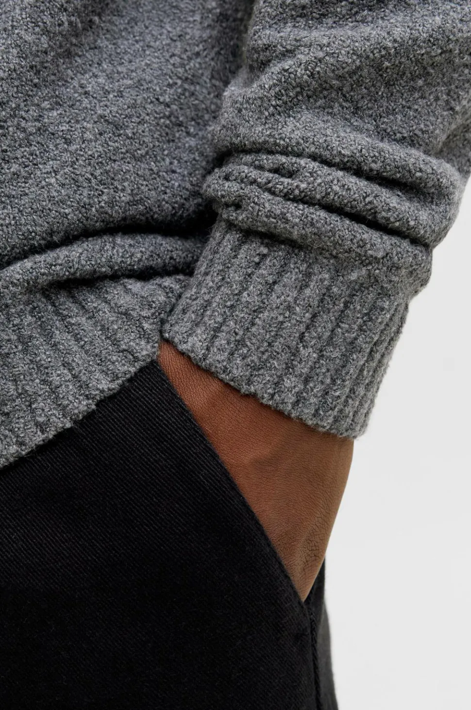 • Ribstrik ved manchetterne og ved nederste kant