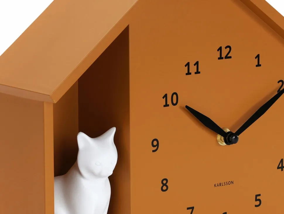 Stilfuld og legende: Karlssons sitting cat vægur er et rigtigt blikfang for cat elskere. Den yndefulde cat sidder tålmodigt i sit hjem og miaver hver time. Med sit minimalistiske design og bløde linjer passer dette ur perfekt ind i et moderne eller skandinavisk interiør. En charmerende tilføjelse til enhver væg.