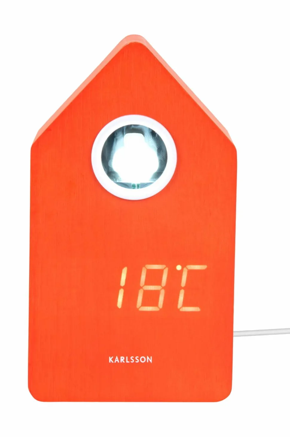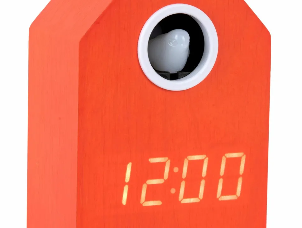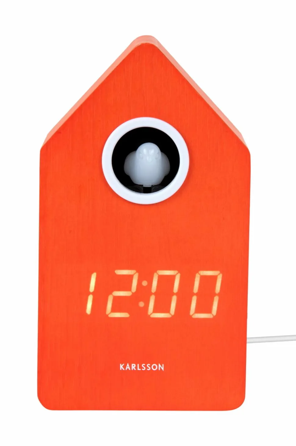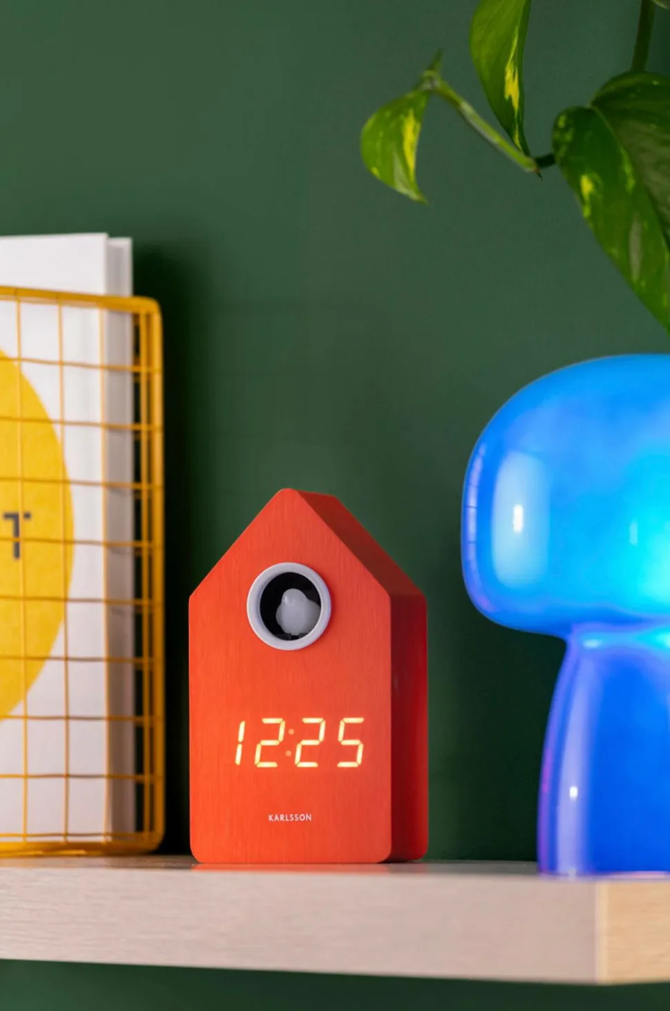 Cuckoo LED- cuckoo ur med et stilfuldt touch. LED-vækkeuret ” cuckoo ” fra Karlsson er en moderne tilføjelse til den populære serie ” cuckoo “. Træfinérdesignet giver et varmt og naturligt udtryk, mens LED-displayet tilfører et elegant, moderne touch. Et legesygt og stilfuldt element til natbordet.