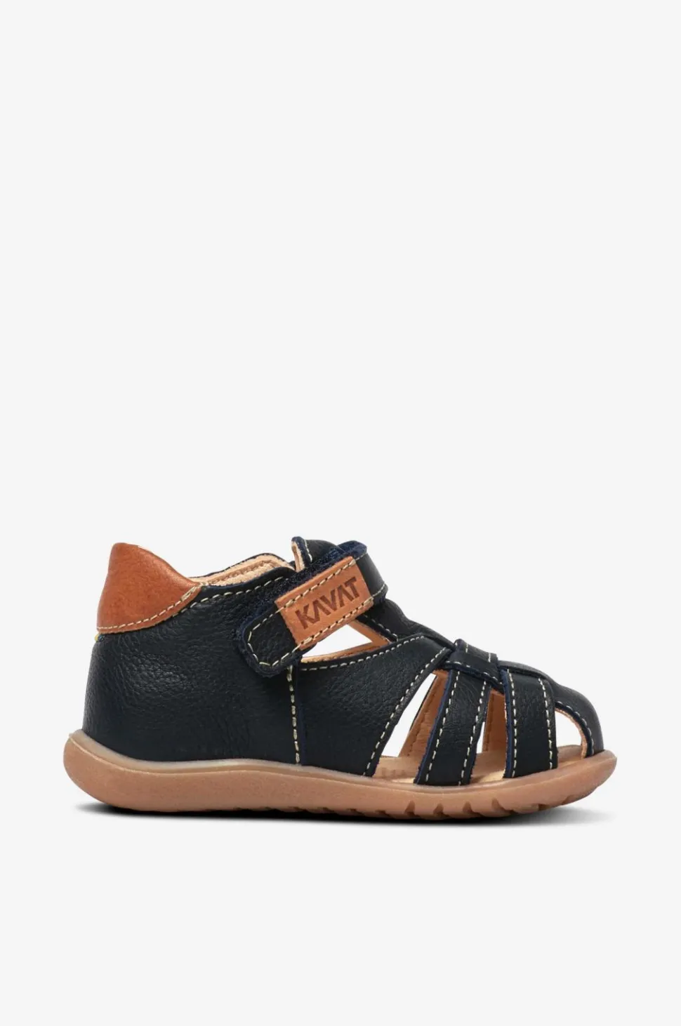 Rullsand er en af Kavats mest populære børnesandaler. Med en blød og støddæmpende indersål og fleksibel ydersål af gummi, giver den god støtte ved udendørs leg. Forstærkning bagpå i hælen giver ekstra beskyttelse og holder foden på plads. Overdel i kromfrit, vandafvisende læder. Justerbar velcrorem for perfekt pasform.