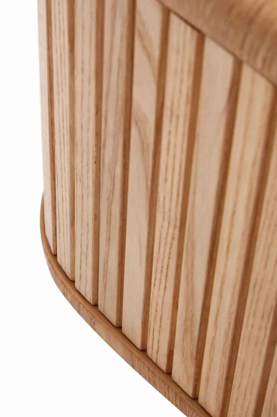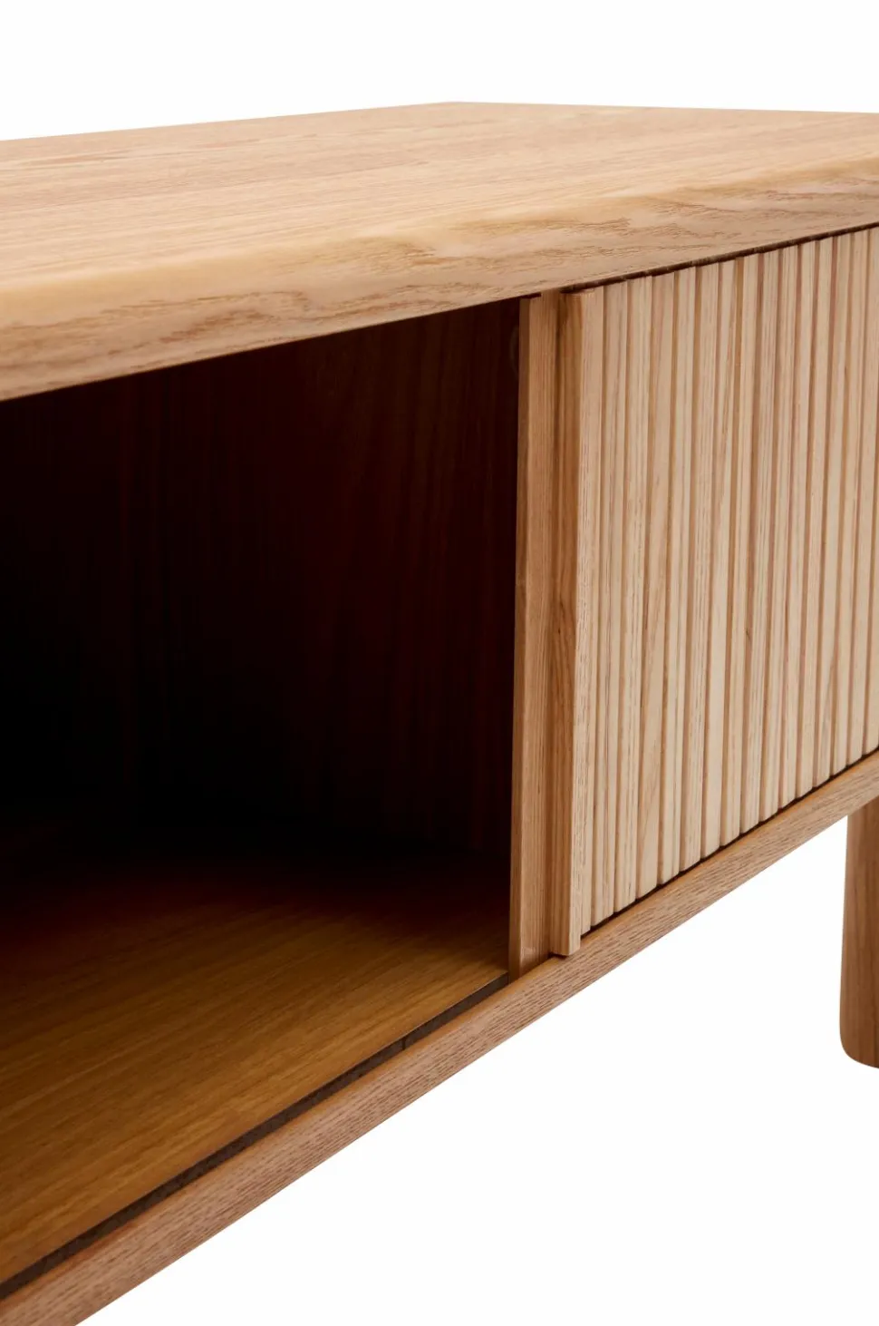 Kave Home-teamet har skabt kollektionen Mailen med et moderne design af afrundede former, lavet af askefinér og skydedøre af trælameller, der gør den til en autentisk stjerne. Produktets bredde: 200 cm. Produktets dybde: 40 cm. Produktets højde: 50 cm.