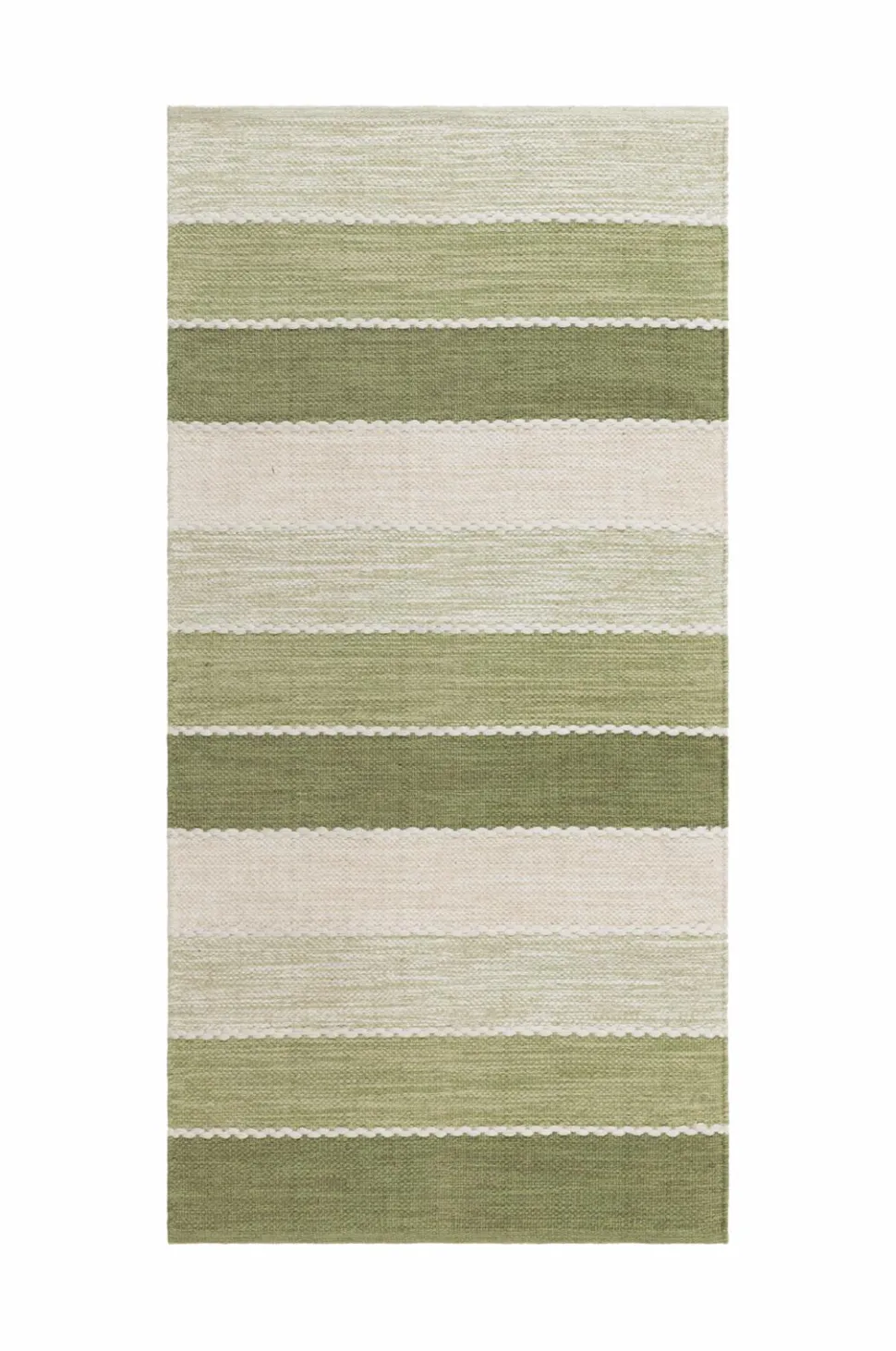 Båstad er et stilfuldt, stribet, håndvævet garntæppe, der giver et levende præg til ethvert rum. Farverne skifter gradvist fra mørkere nuancer i kanterne til lysere toner i midten, mens hvide syninger elegant markerer overgangene. Tæppet er fremstillet af ren bomuld og er både slidstærkt og blødt. Den brede farvepalet gør, at båstad passer perfekt til både minimalistisk og moderne interiør.