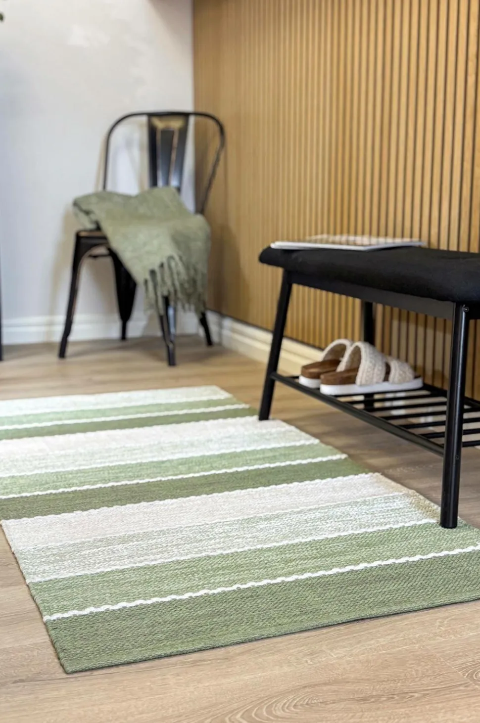 Stribede garntæpper kan håndvaskes i koldt vand med sæbe eller et mildt rengøringsmiddel. Skrub forsigtigt med en blød børste i stribernes retning på begge sider, og skyl derefter grundigt.