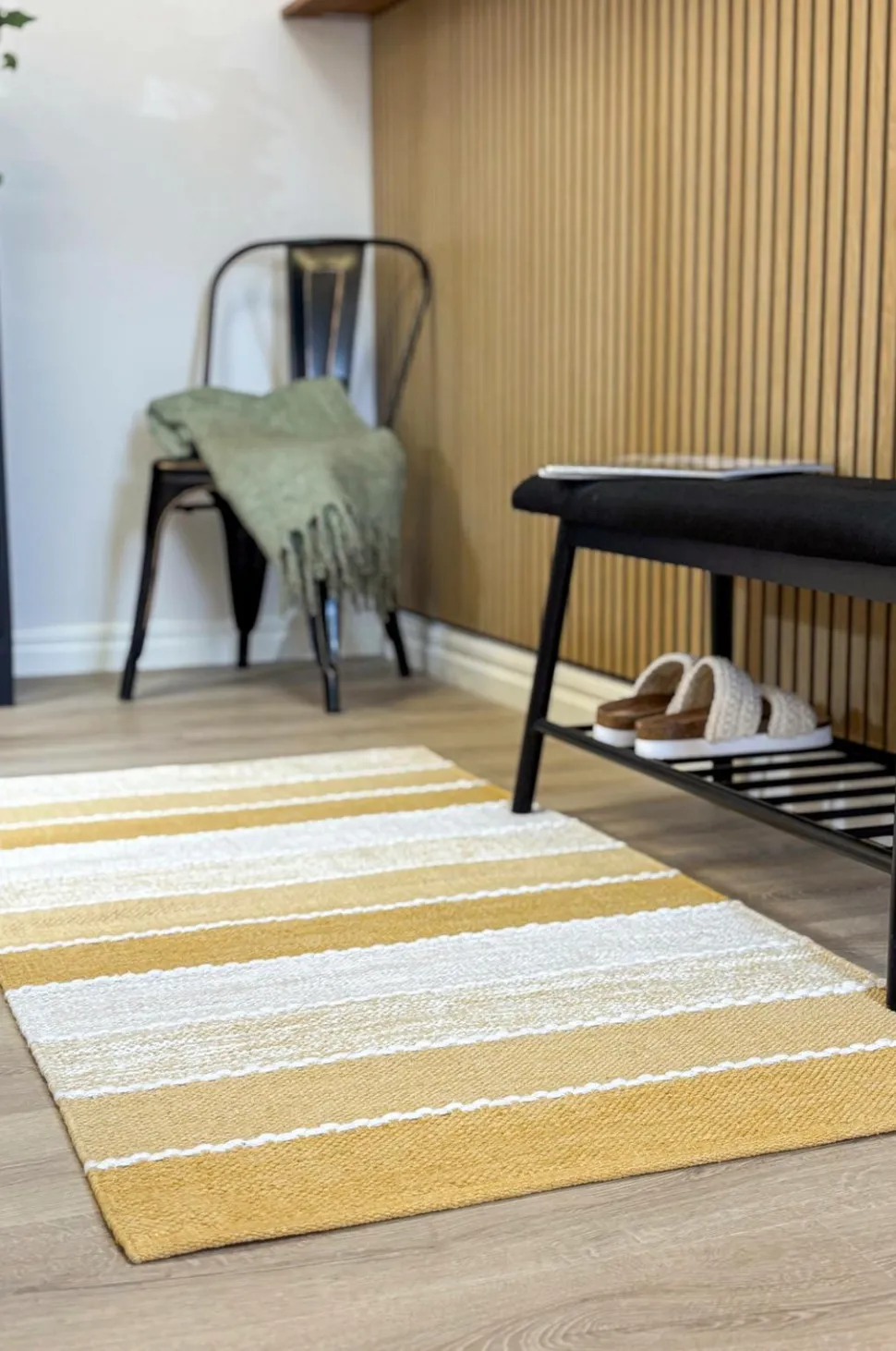 Båstad er et stilfuldt, stribet, håndvævet garntæppe, der giver et levende præg til ethvert rum. Farverne skifter gradvist fra mørkere nuancer i kanterne til lysere toner i midten, mens hvide syninger elegant markerer overgangene. Tæppet er fremstillet af ren bomuld og er både slidstærkt og blødt. Den brede farvepalet gør, at båstad passer perfekt til både minimalistisk og moderne interiør.