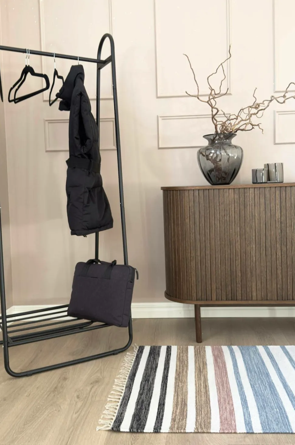 lad tæppet tørre fladt eller hæng det op i stribernes retning med flere linjer som støtte