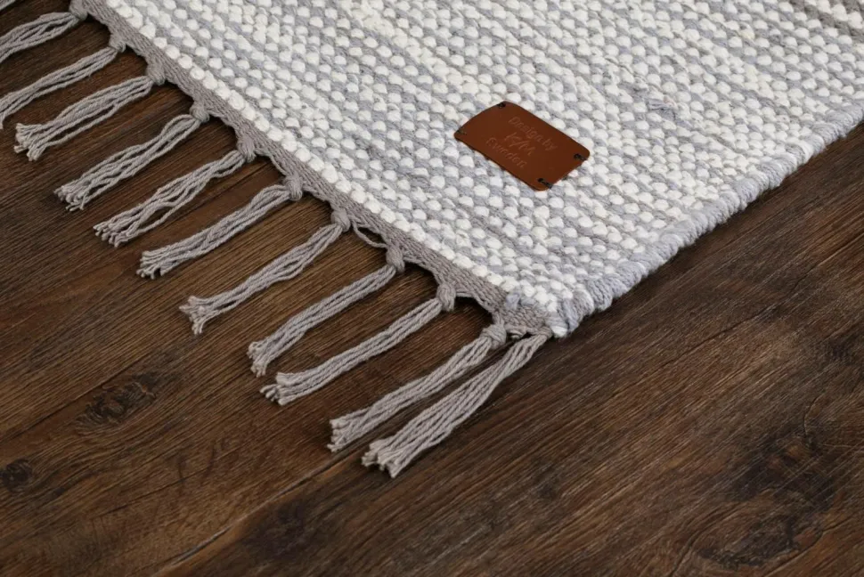 Dette er et håndvævet bomuldstæppe, hvilket betyder, at mønsteret og farven varierer, hvilket gør hvert tæppe unikt. Tæppet er vævet i ren bomuld, hvilket gør det både blødt, robust og slidstærkt. Det skaber en hyggelig følelse, der liver rummet op og samtidig dæmper lyden.