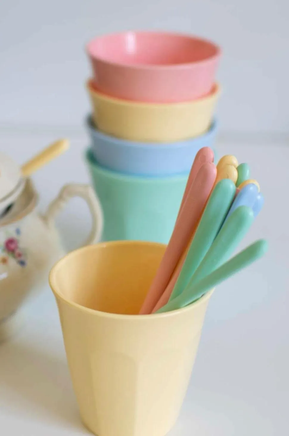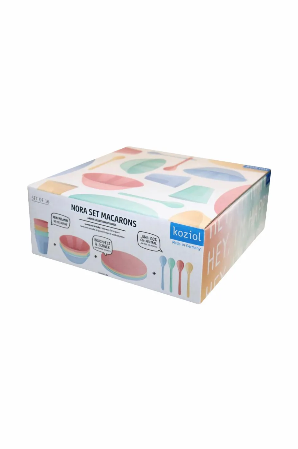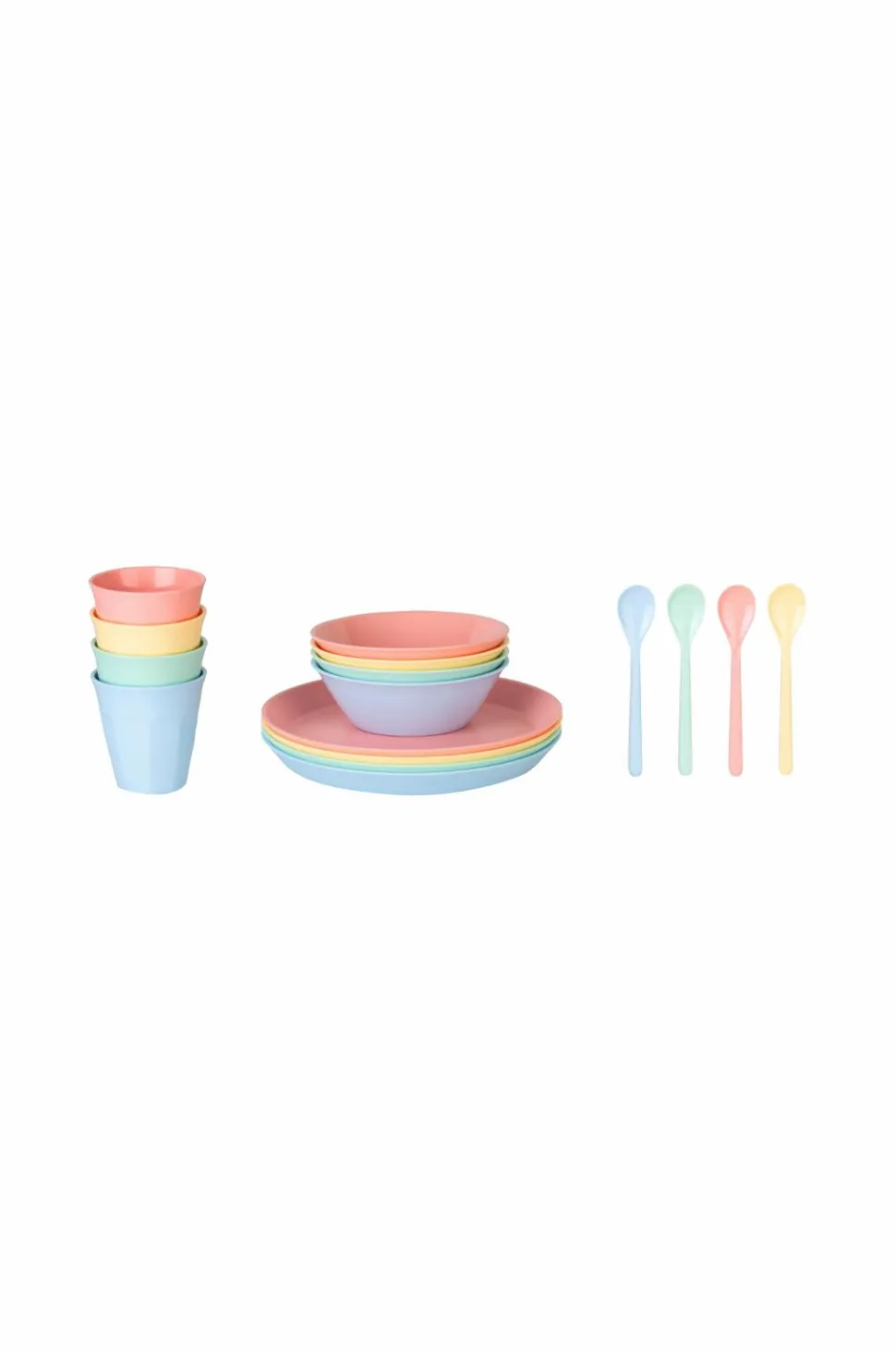 Det perfekte stel til festen er her! Stellet består af 16 dele og afspejler livsglæde, hvor kopper, skåle, tallerkener og skeer kan kombineres til en farverig lejlighed. Den lille tallerken er ideel til frugt, snacks eller kage, og den lille skål vil hurtigt blive din go-to til morgenmadsprodukter og desserter. Den lille kop ligger godt i hånden, og dens fine form kan sikkert gribes af børnehænder. Produkterne kan stables, er lette og ubrydelige.