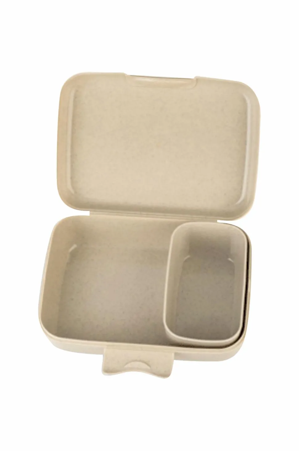 I den rummelige og farverige candy madkasse holdes brød, snacks, frugt og endda sandwiches friske og appetitlige. Lukningen er designet, så madkassen ikke kan åbnes ved et uheld under transport. Den afrundede form føles glat og sikrer, at den ikke hænger fast i ting, når du tager kassen op af din taske eller rygsæk. Mål: l 19 cm b 13,5 cm h 6,5 cm materiale: termoplast og træfiber. 100 % genbrugsmateriale. Instruktioner: tåler opvaskemaskine.