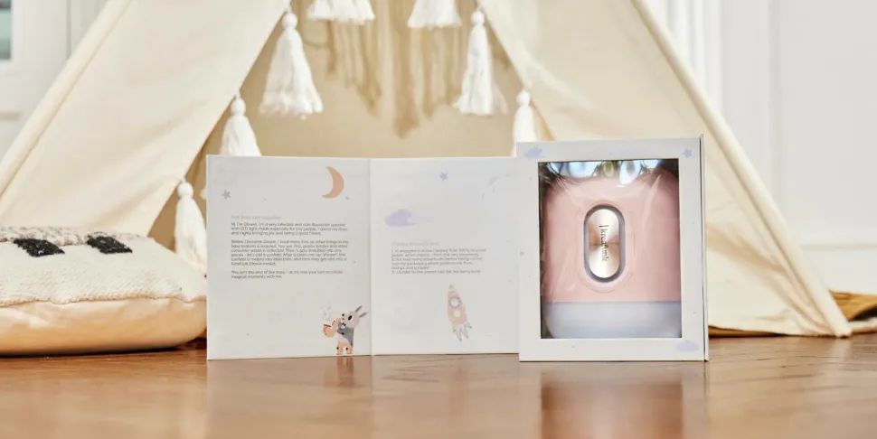 glowie er en dejlig følgesvend, der kombinerer funktionaliteten af en lampe og en højttaler i en enkelt enhed. Den er både praktisk for babyer og uendelig