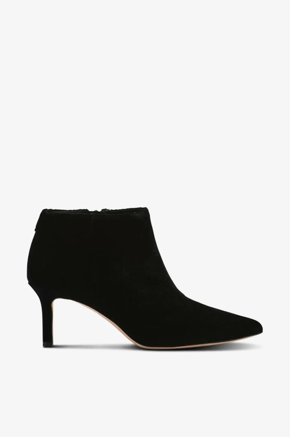 • Ankelstøvler i fløjl med tynd, beklædt hæl