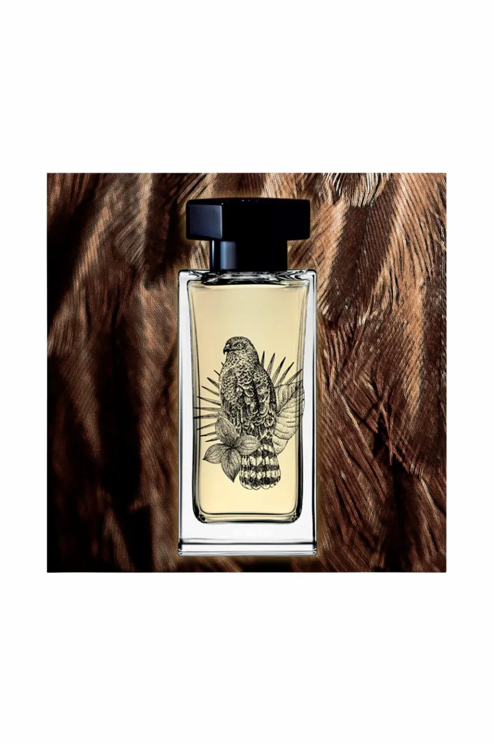 Heliaca – ørnens kraft. Øverst oppe i de flere hundrede år gamle træer, en urolig bevægelse, der buldrer som om et fjernt tordenvejr. Ørnen sidder højt over dette landskab og overvåger sit territorium med sit skarpe blik. En duft af stærke krydderier, en blanding af ingefær og kardemomme, og pludselig træder den ædle kraft af gammelt træ frem. Ørnens fascinerende kraft.