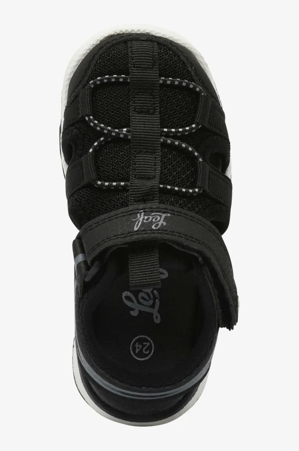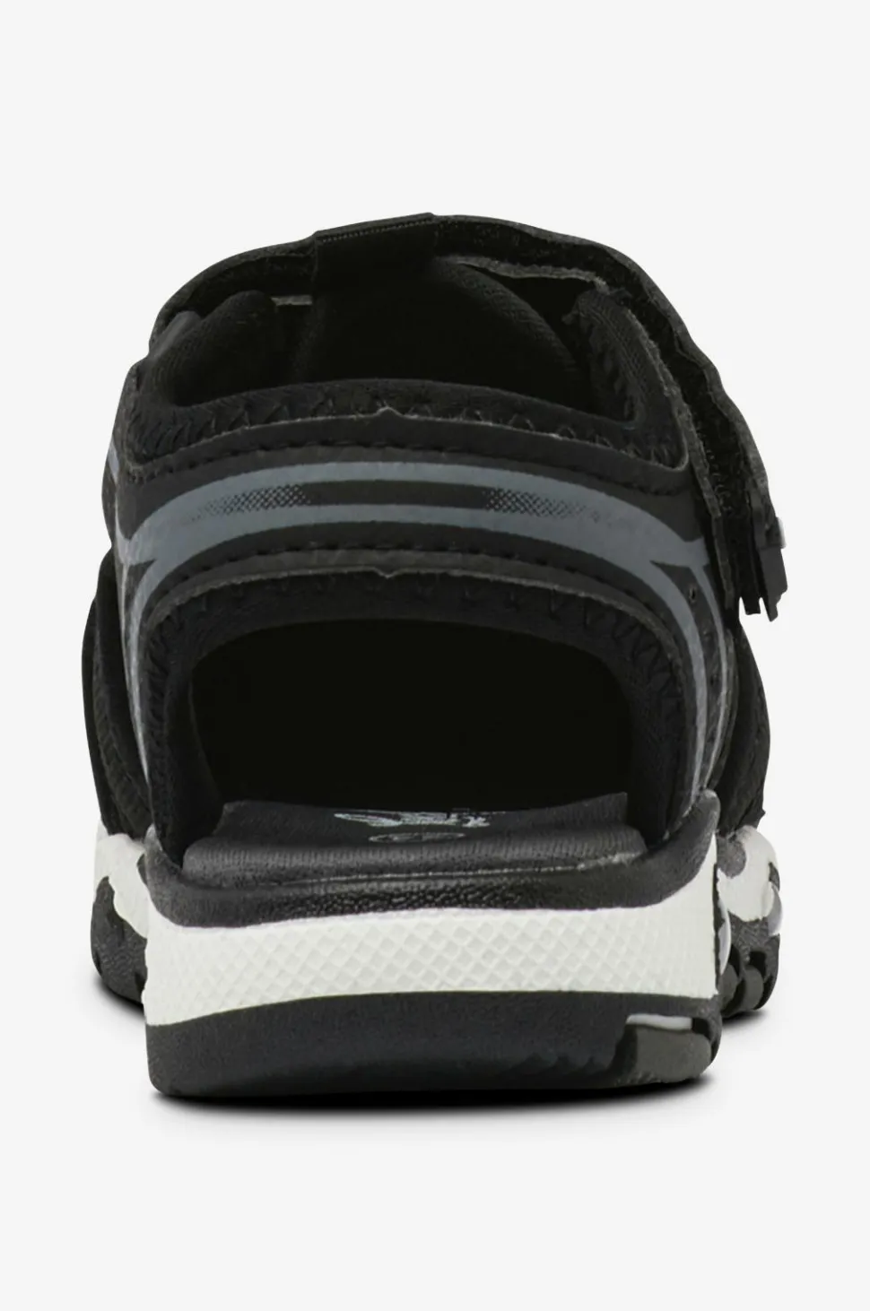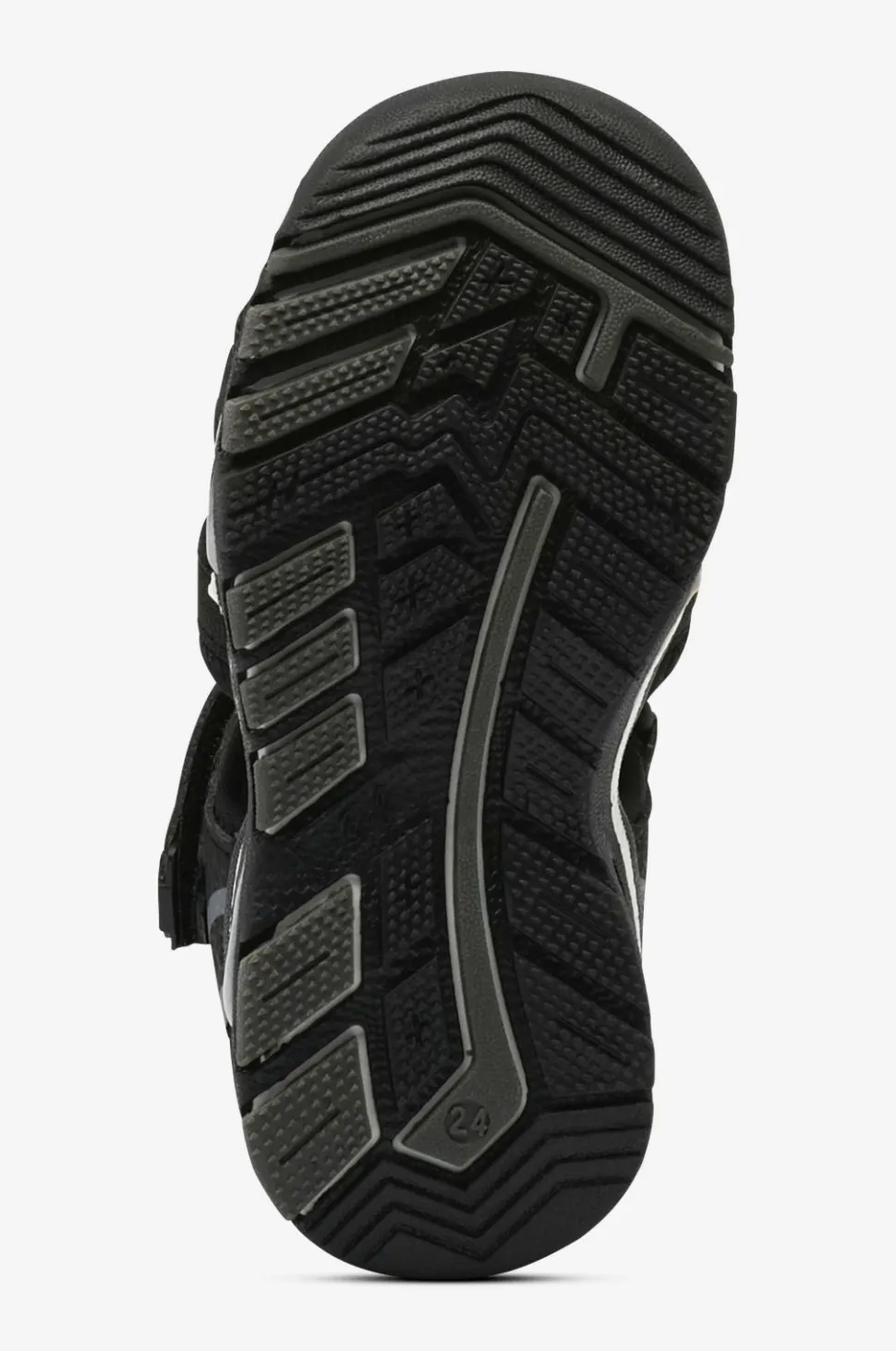 Sporty sandaler i tekstil og syntet med lukket tå med forstærkning. Sål som blinker i forskellige farver. Åbninger i siderne og bagpå for luftig komfort. Justerbar velcro gør det lettere at tage skoen på og giver perfekt pasform. Let vatteret rem rundt om hælen.