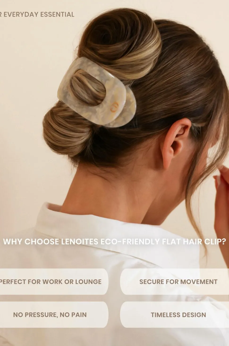 Lenoites Flat Hair Clip er en elegant hårklemme fremstillet af miljøvenligt celluloseacetat – et eksklusivt og bæredygtigt materiale, der føles let, holdbart og luksuriøst. Det ergonomiske design følger hovedets form og giver et sikkert greb hele dagen uden at skade håret.