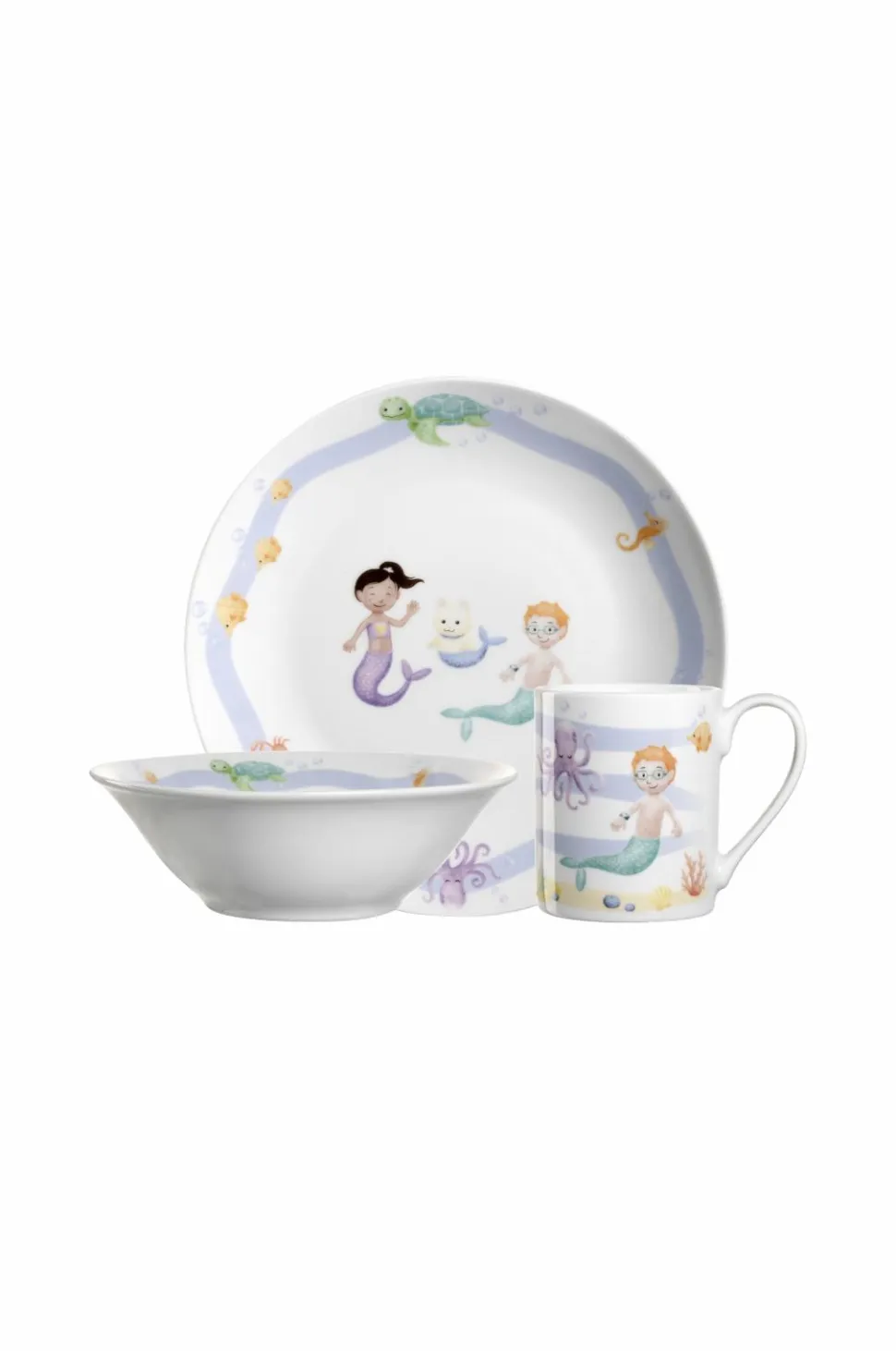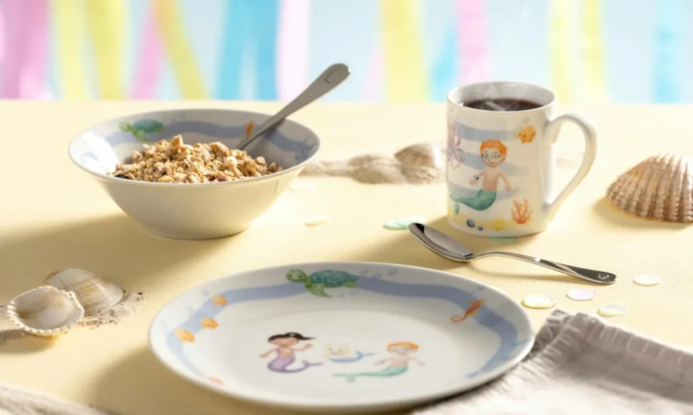 Bambini avventura Børneservice bestående af krus, tallerken og kop med tegneseriemotiver af rummet og austronauter. Stellet tåler opvaskemaskine og mikroovn. Volumen krus: 20 cl krusmål: h8 cm / d6,6 cm tallerkenmål: h2 cm / d20 cm skålmål: h4,5 cm / d15 cm materiale: porcelæn tåler opvaskemaskine: ja tåler mikroovn: ja