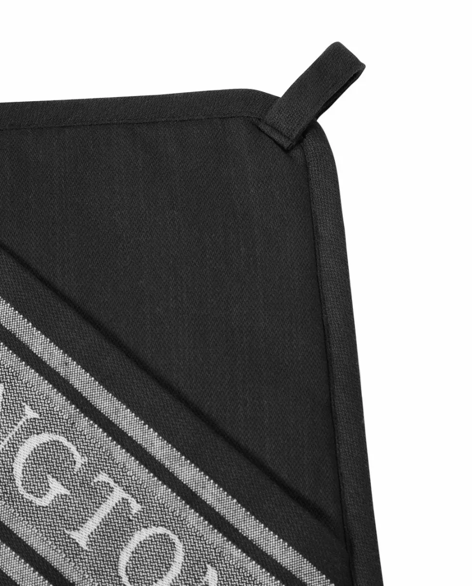 Denne klassiske grydelap med bøjle er fremstillet af 100 % bomuld og har Lexington-logo og jacquardstriber med stjerner. Fuldend dit køkken med det matchende håndklæde, vante og forklæde. Fås i kjoleblå/hvid, due/hvid, salviegrøn/hvid og sort/hvid.
