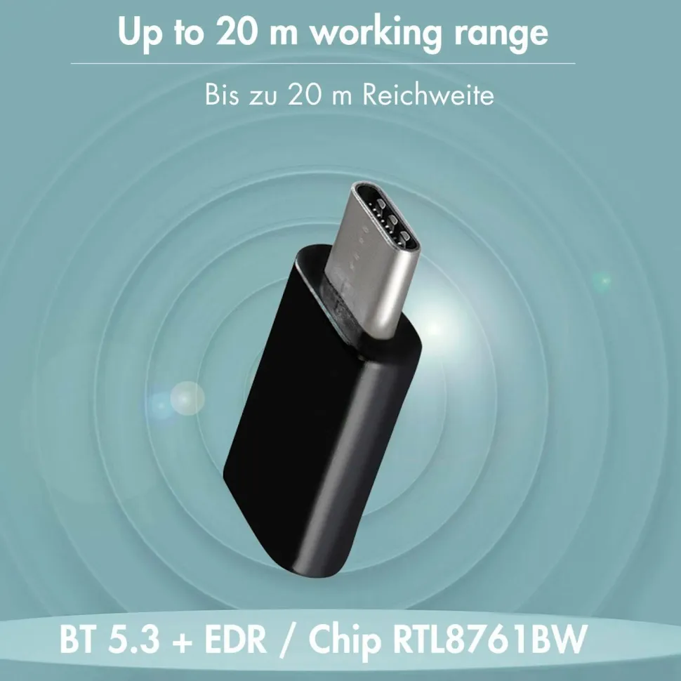 • USB-C-adapter med Bluetooth 5.3, 20 m rækkevidde