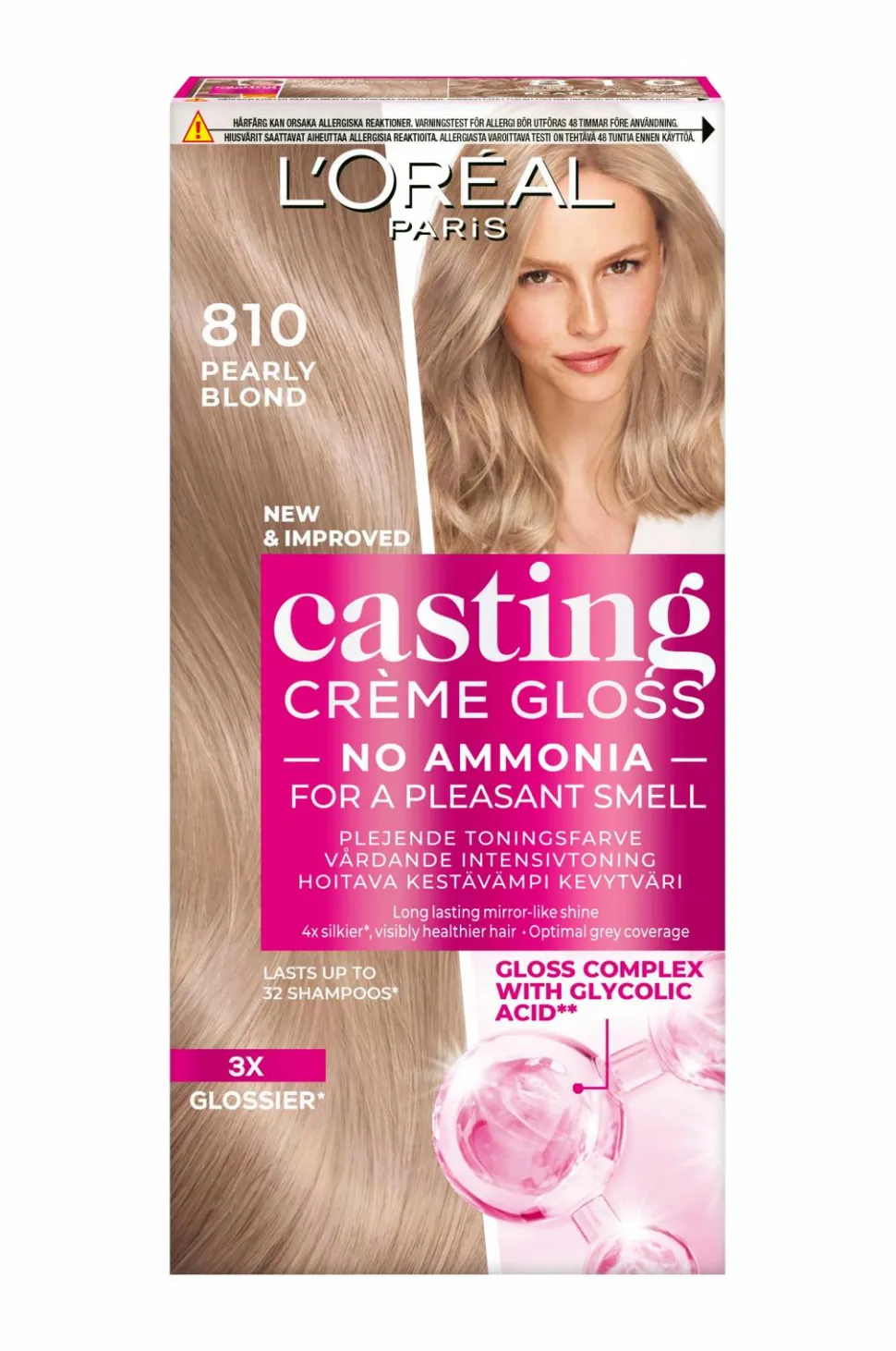 L’Oréal Paris Casting Crème Gloss er en semi-permanent hårfarve til alle hårtyper. Formlen er beriget med et gloss-kompleks med glykolsyre**, og resultatet er optimal dækning af grå hår og 3x mere glansfuldt samt 4x mere silkeblødt hår*.