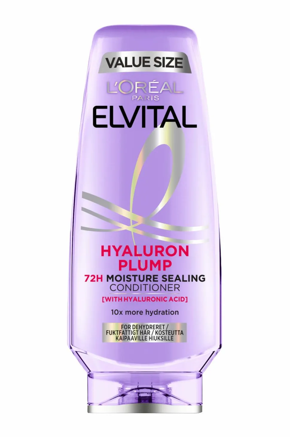 L’Oréal Paris Elvital Hyaluron Plump conditioner er en balsam til dehydreret hår. Formlen er beriget med hyaluronsyre og fylder dit hår med fugt i 72 timer*. Resultatet er fyldigere hår som er 10x mere fugtet*.