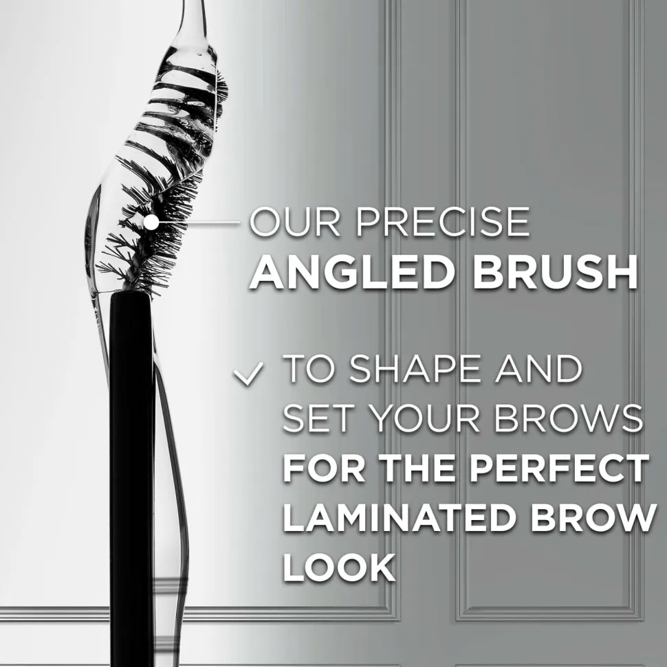 Den unikke applikator med vinklet børste og asymmetriske børstehår hjælper dig til at forme og sætte dine bryn for et perfekt lamineret brynlook.