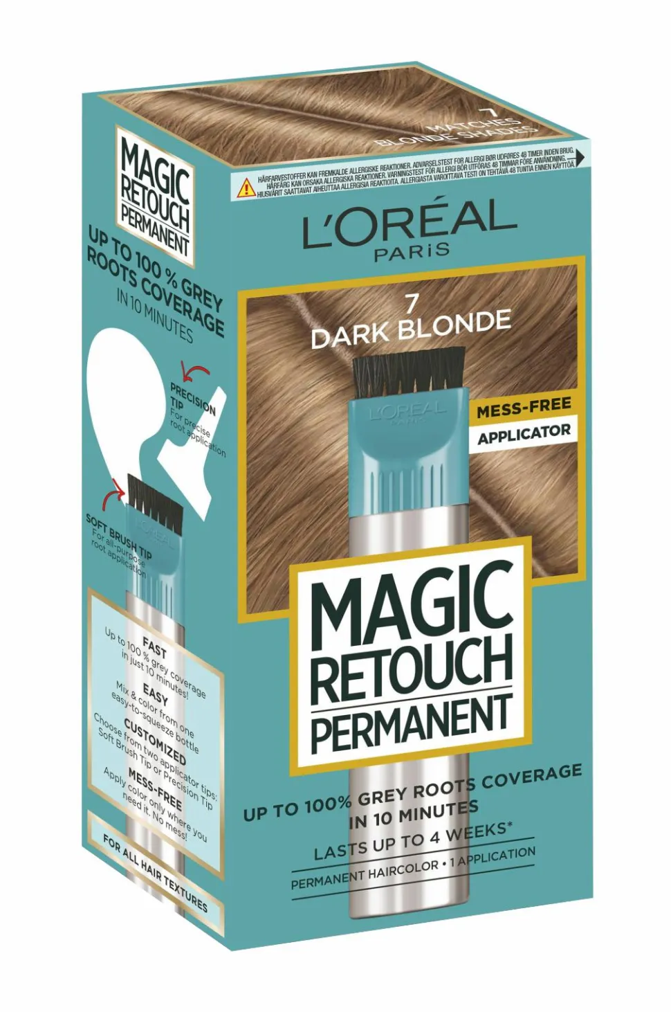 Magic Retouch permanent hårfarve til udvoksninger giver et quick-fix mellem hårfarvninger. Formlen matcher din hårfarve og giver et smukt og jævnt resultat med op til 100% dækning af grå hår – på kun 10 minutter! Den smarte applikator gør det nemt og hurtigt at skjule dine udvoksninger.