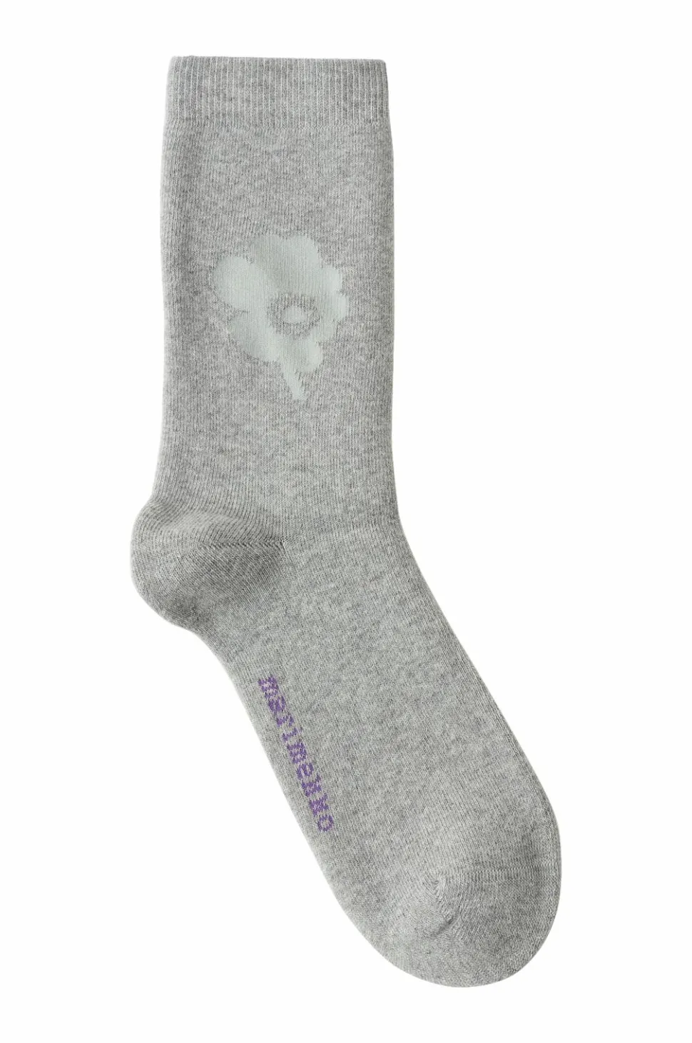 Ankelstrømperne fra Pirtti er lavet af en bomuldsblandet frottéstrik og har blomster fra Unikko.