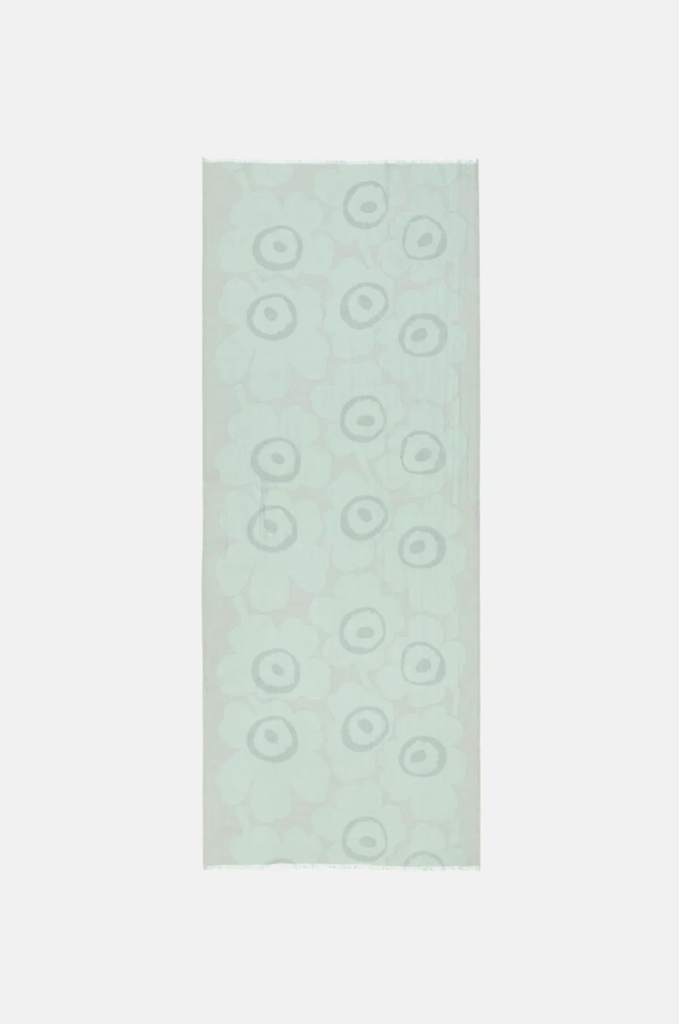 70X180Det gennemsigtige Fiore tørklæde er lavet af 100 % certificeret uld i mønsteret Unikko. Enderne af tørklædet er ufærdige.