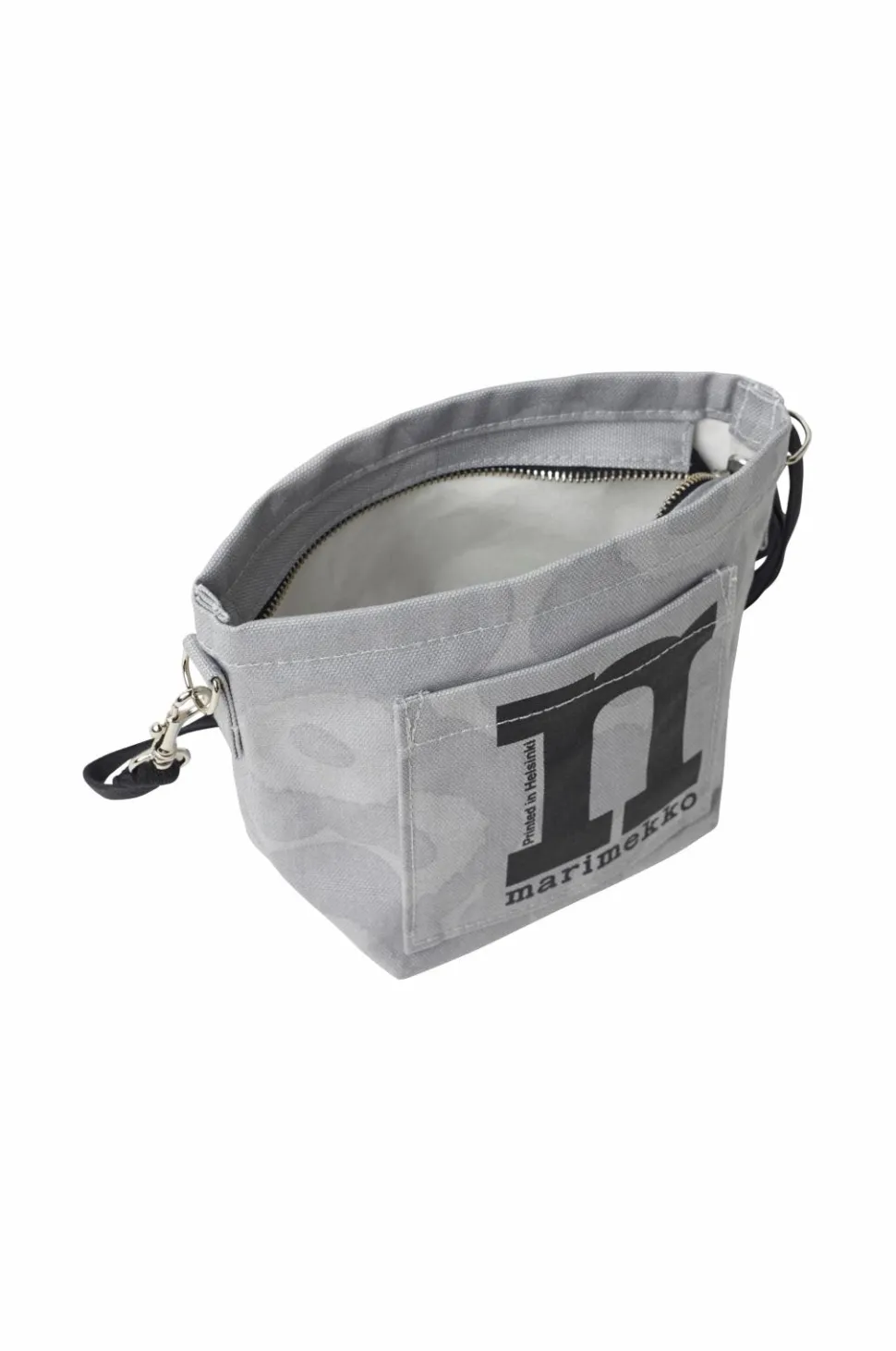Mono Mini Crossbody er lavet af økologisk bomuld, og den har Unikko -mønsteret, som er trykt i Helsinki. Det store Marimekko “M” er trykt på forsiden. Skuldertasken lukkes med lynlås, har en åben lomme på ydersiden og en justerbar skulderrem.