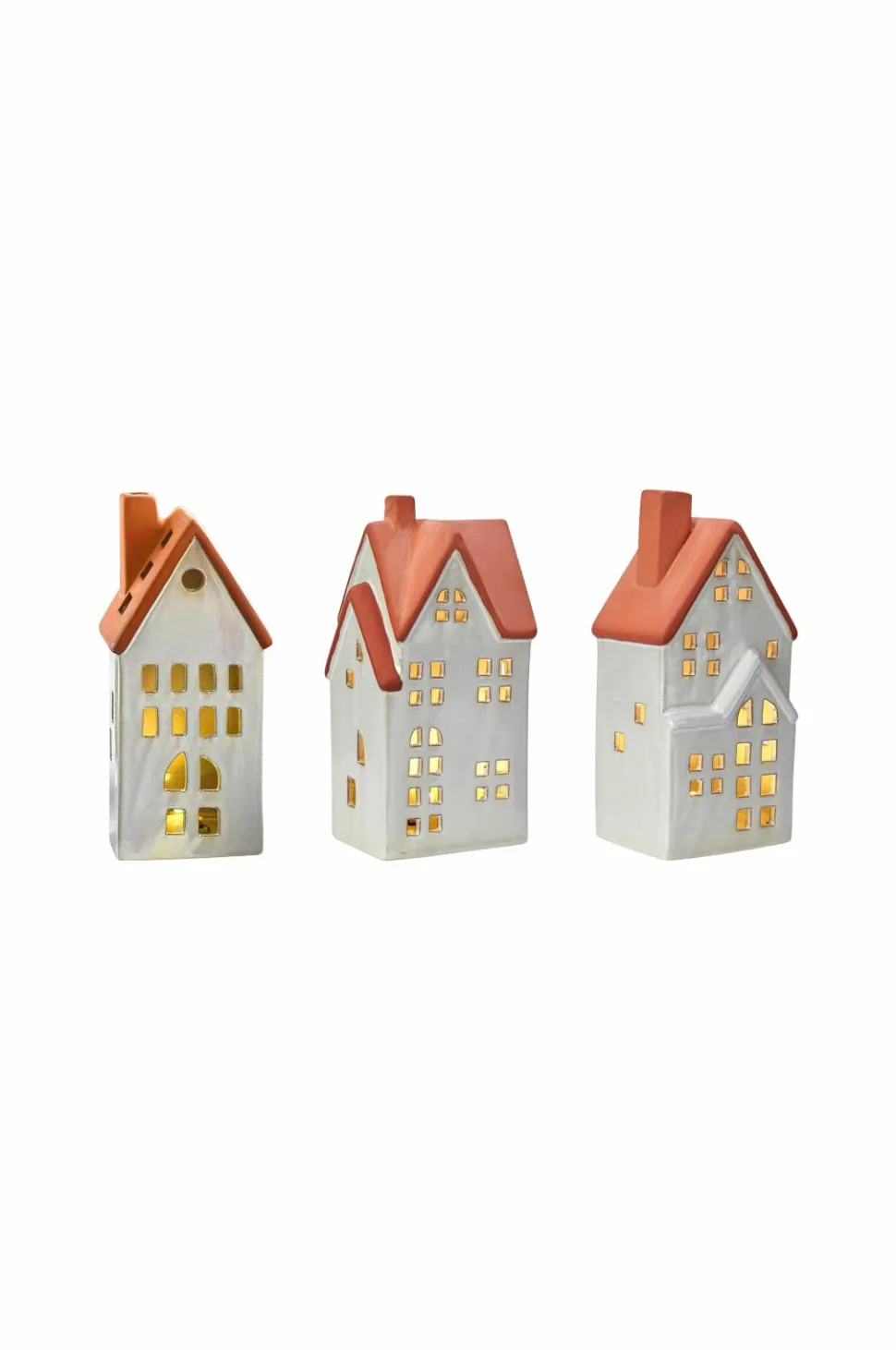 Molton borddekoration fra markslöjd. 3 sæt huse i keramik. Højde hus, 17,8 cm, 17,5 cm og 17,3 cm. Indeholder fjernstyrede led-varmelys i en pakke med 3. Genopladelige plastvarmelys. 2,4,6 og 8 timers timerfunktion. Justerbar lyseffekt, konstant eller flamme. Konstant lys i 4 dæmpbare trin. 1 m usb-c-kabel medfølger. Kontakt under hvert lys.