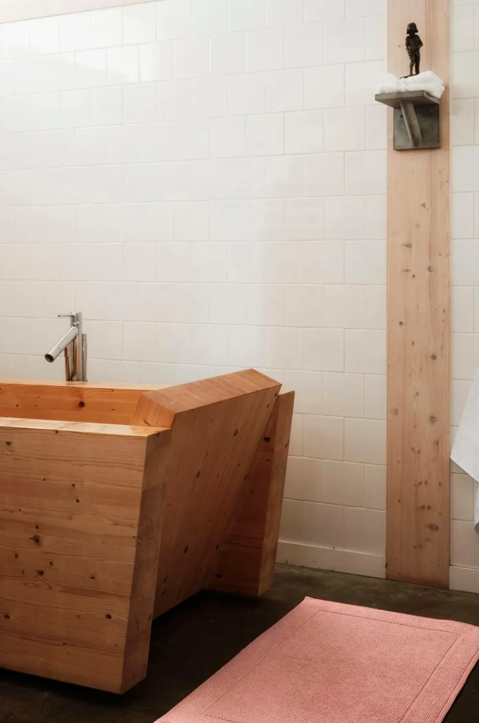 Badeværelsesmåtte i stonewashed bomuldsfrotté med indvævet bort i en ramme. Oeko-Tex Standard 100