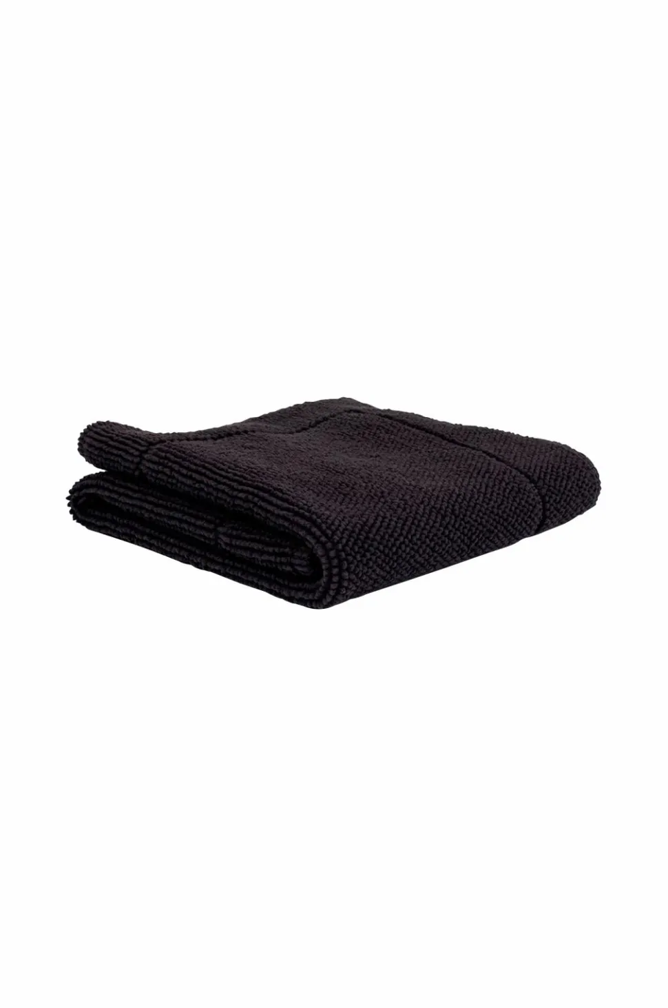 Badeværelsesmåtte i stonewashed bomuldsfrotté med indvævet bort i en ramme. Oeko-Tex Standard 100