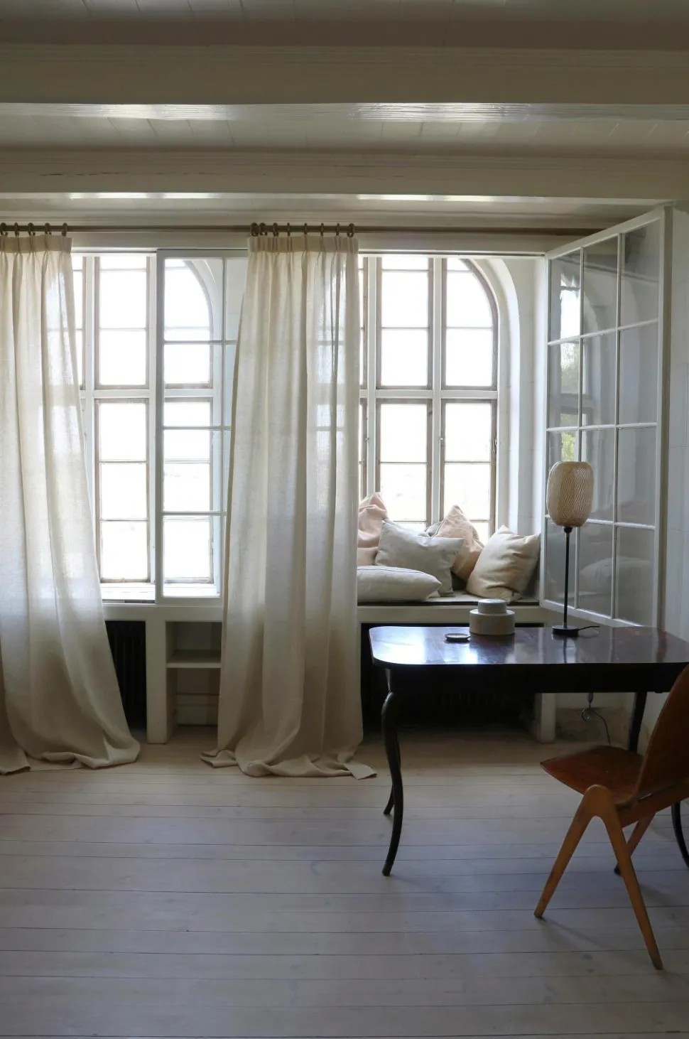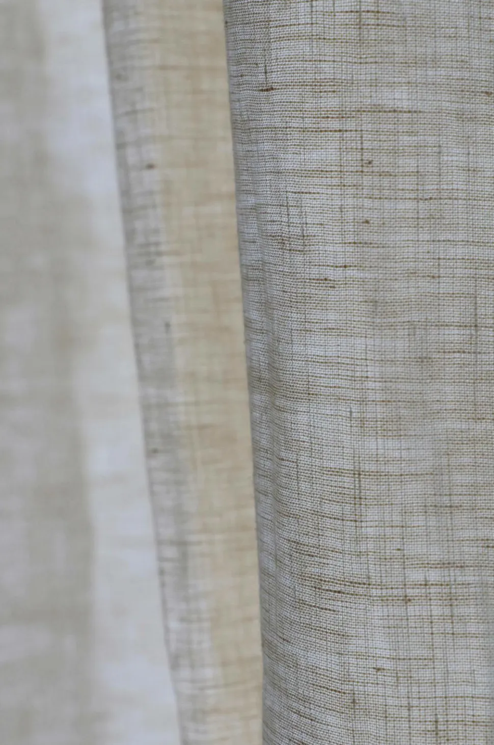 Gardin i 100% hør, som er 130 cm bredt. Hørgardinet er chambrayvævet med hvid trend og farvet islæt, hvilket gør farverne bløde og behagelige og giver gardinet et sprødt udtryk. Hørstoffet er i en utroligt høj kvalitet og kan stryges og rulles for at få en nærmest blank overflade. De kan også hænges op som de er, hvor de er naturligt krøllede, når man trækker i dem. Uanset hvad, så har dette gardin et utroligt smukt fald og bliver smukkere med årene. Gardinet har et skræddersyet look med klassiske, usynlige sidesømme og dobbelt oplæg forneden, så det får den rigtige tyngde. 4-fingerkrog medfølger til hver gardinlængde med rynkebånd. Fingerkrogsophæng passer til alle skinner med glidere og almindelige gardinstænger med gardinringe og stropper. 4-fingerkrog anvendes til at skabe flotte folder i gardinet, som giver et velsyet indtryk og lader gardinerne komme til deres ret. Stoffet er OEKO-TEX® Standard 100 certificeret, det vil sige at produktet er testet for at sikre, at det ikke indeholder sundhedsskadelige stoffer. 30 grader skånsom maskinvask eller kemisk rens. Bredde 130 cm Højde 250 cm og 290 cm. Sælges stykvis.