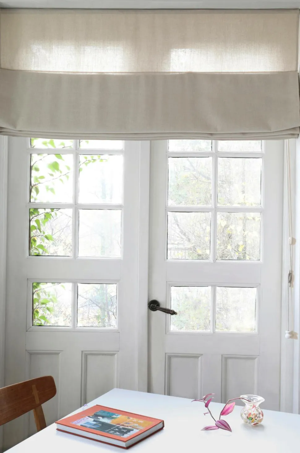 Mimous liftgardin er 220 cm langt hvilket gør at det også passer i lidt højere vindue samt de fleste glasdøre. Stoffet Studio har et tungt fald og smuk struktur som lyset skinner igennem men som beskytter helt mod indsyn. Liftgardinet er skræddersyet med smalle sidefolder og med lægter, der giver stramme læg ved foldning. Afstanden mellem lægterne gør, at liftgardinet foldes smukt sammen, uanset hvilken højde du vælger at have det på. Det er lige så fint i fuld optrukket position, som når det hænger helt ned eller er højdejusteret, hvor sømmene til lægterne er placeret. Det kan naturligvvis justeres frit. Stoffet er monteret med velcrobånd på en stabil aluminiumsprofil, der kan monteres både i loft og på væg. Linerne fra lægterne samles i en linedeler som er designet til at blive separeret, hvis dit barn eller et husdyr bliver viklet ind i linerne. Længst nede på snøren af vævet svensk hør sidder en klassisk porcelænsknop fremstillet i Bromölla. Beslag og snorholder medfølger. Set forfra sidder snoretrækket i højre side. Det er vigtigt at snøre linen ordentligt rundt om knoppen hver gang højden justeres, så der ikke hænger lange snore ned, som små børn eller husdyr kan blive viklet ind i. Stoffet opfylder alle de sikkerhedskrav angående brand, som stilles til gardiner i det offentlige rum. Og det er OEKO-TEX® Standard 100 certificeret, det vil sige at produktet er testet for at sikre, at det ikke indeholder sundhedsskadelige stoffer.