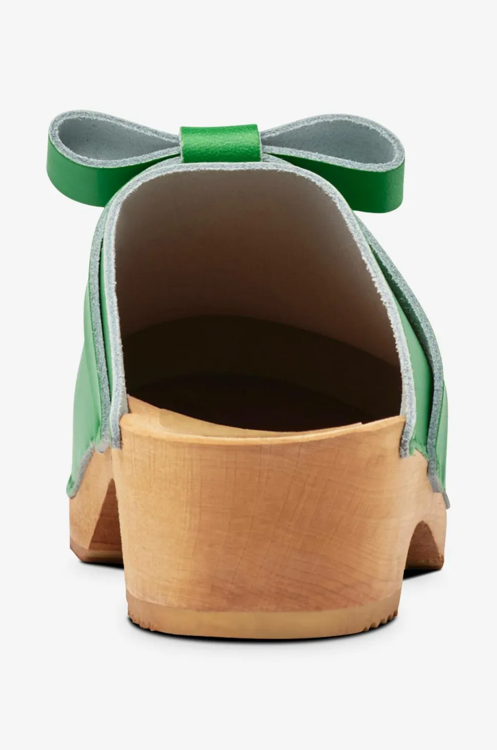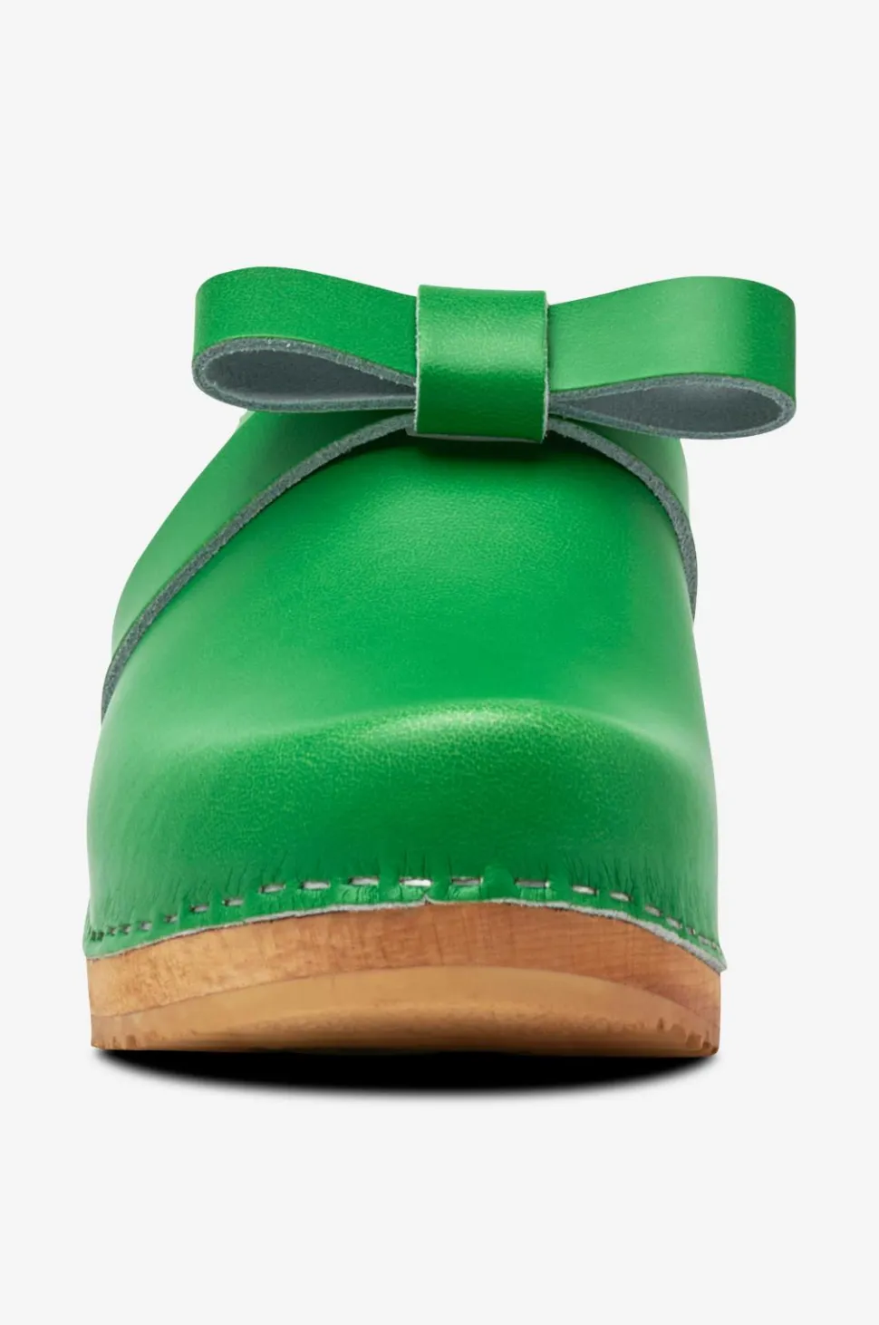 I år fylder Mimou 20 år, og det fejrer de med forskellige produktlanceringer i løbet af året, som længe har stået på deres bucket list. Først ud er en træsko designet af Karin Mannerstål med en stram sløjfe. Grunden til, at valget faldt på Karin til dette designsamarbejde, var helt naturlig. Det var Karin, der skabte Mimous logo for 20 år siden, og Karin er både glad for træsko og sløjfer. Med hendes selvfølgelige og klare designsprog var valget let. Ud over god produktion er Mimou passioneret omkring kontekst, så da de fandt en andengenerations skomagerfamilievirksomhed i de dybe skove i Småland, fik de endelig mulighed for at gøre deres længe ønskede træsko til virkelighed.