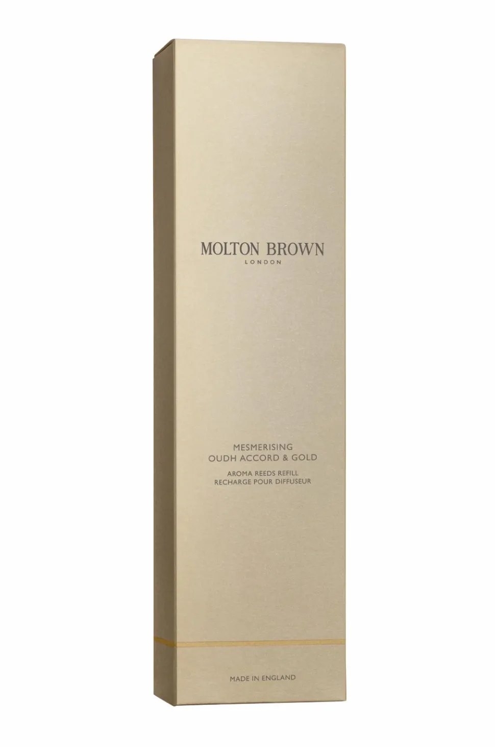 Molton Brown Mesmerising Oudh Accord & Gold Aroma Reeds fylder dit hjem med en fængslende og overdådig duft af varm kanel, røget sort te og intens oudh. En raffineret indretningsdetalje, der giver en sofistikeret og indbydende atmosfære – perfekt til dem, der ønsker at omgive sig med hverdagsluksus. Løft oplevelsen yderligere med Molton Browns matchende duftlys.