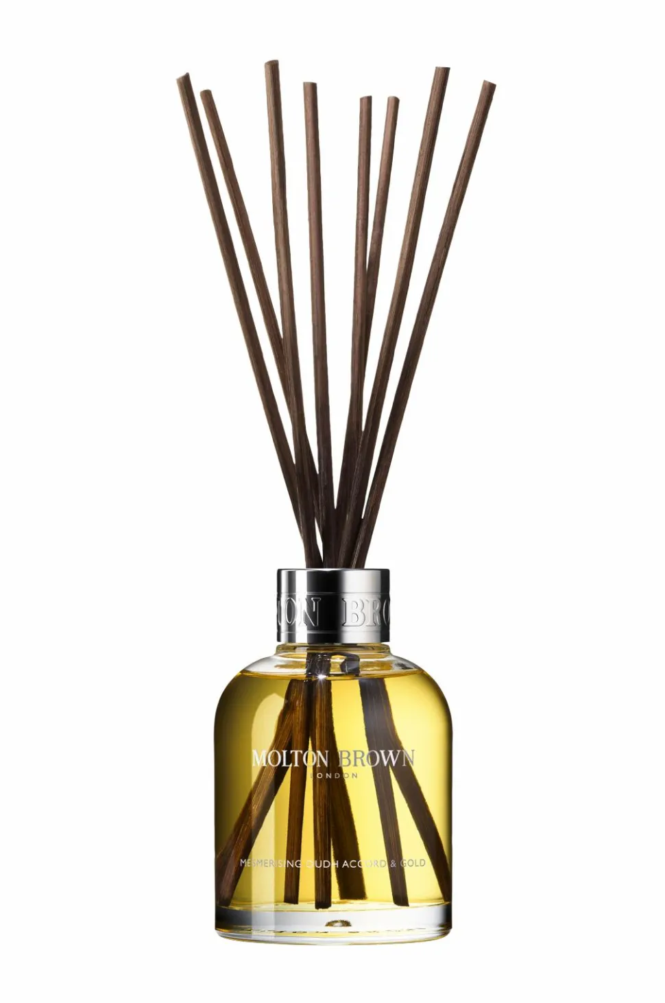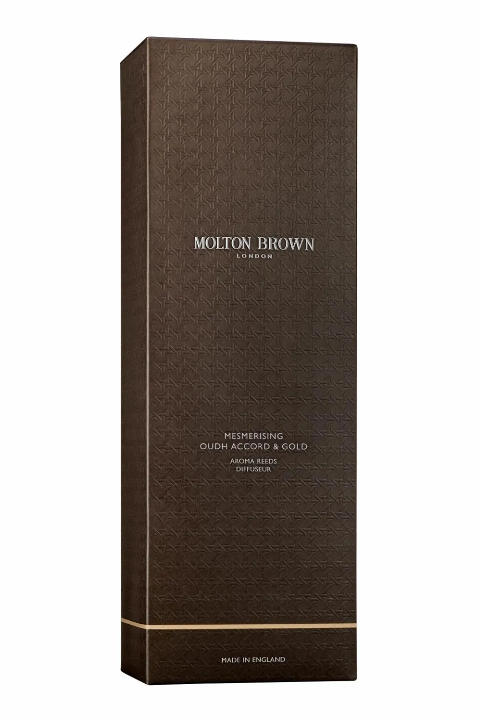 Molton Brown Mesmerising Oudh Accord & Gold Aroma Reeds fylder dit hjem med en fængslende og overdådig duft af varm kanel, røget sort te og intens oudh. En raffineret indretningsdetalje, der giver en sofistikeret og indbydende atmosfære – perfekt til dem, der ønsker at omgive sig med hverdagsluksus. Løft oplevelsen yderligere med Molton Browns matchende duftlys.