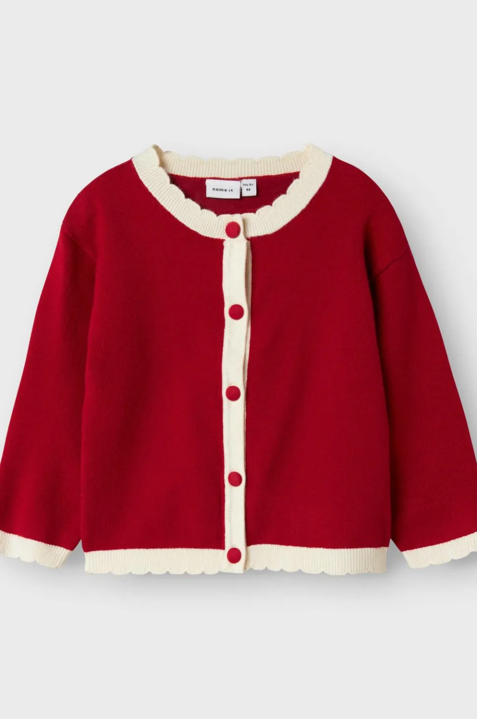 • Langærmet, fintstrikket cardigan med rund halsudskæring