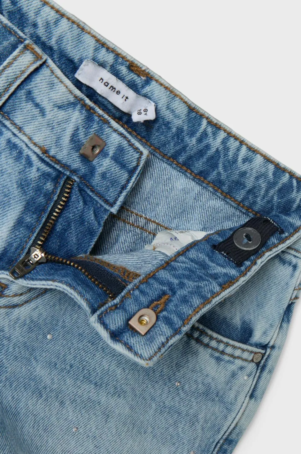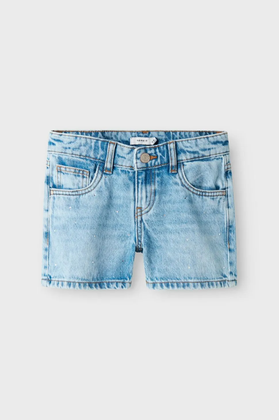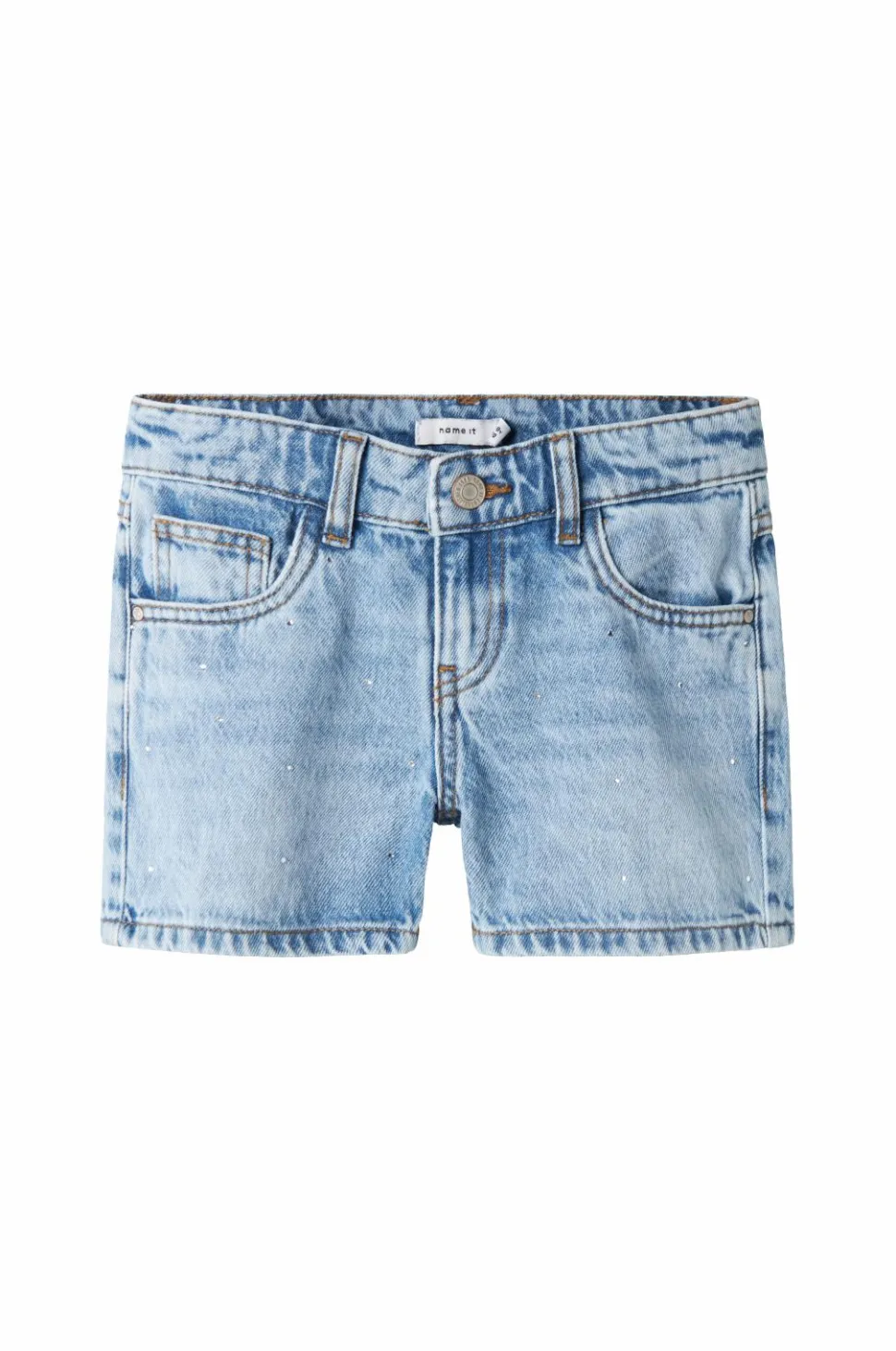 • Denimshorts med glitrende sten foran