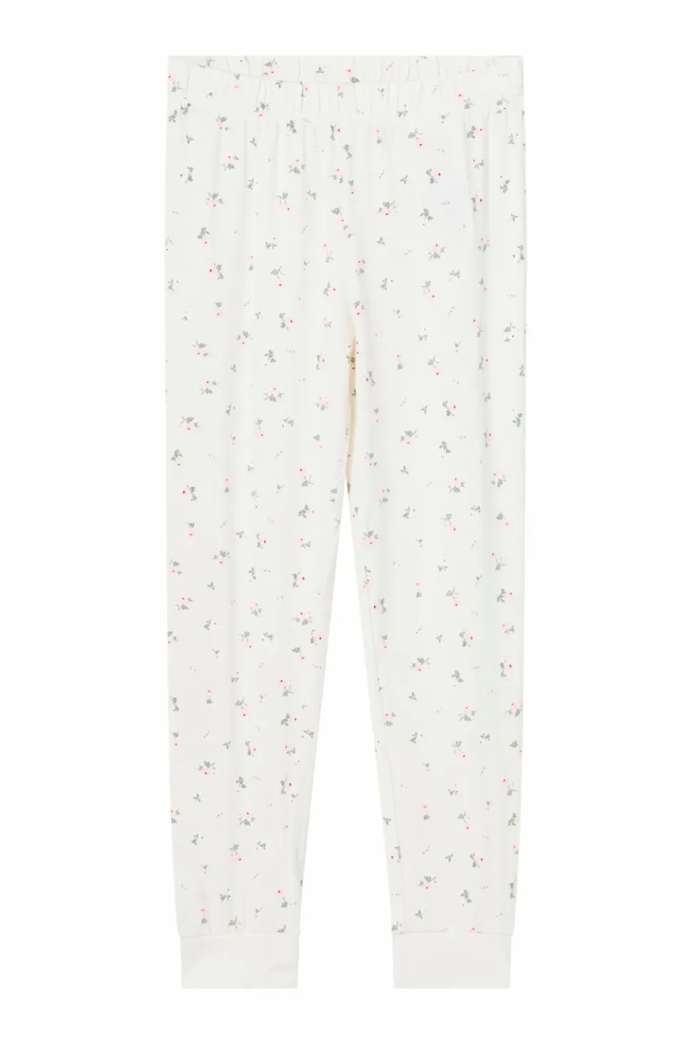 • Bukser med elastisk talje og ribmanchetter ved enden af benene