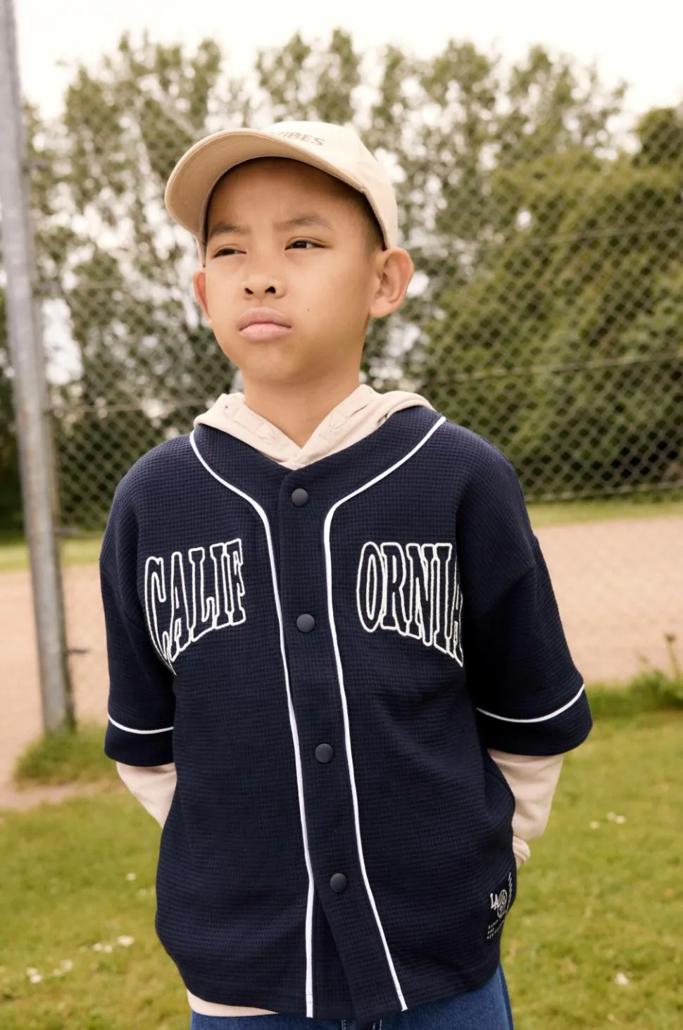 • Vaffelmønstret baseballskjorte