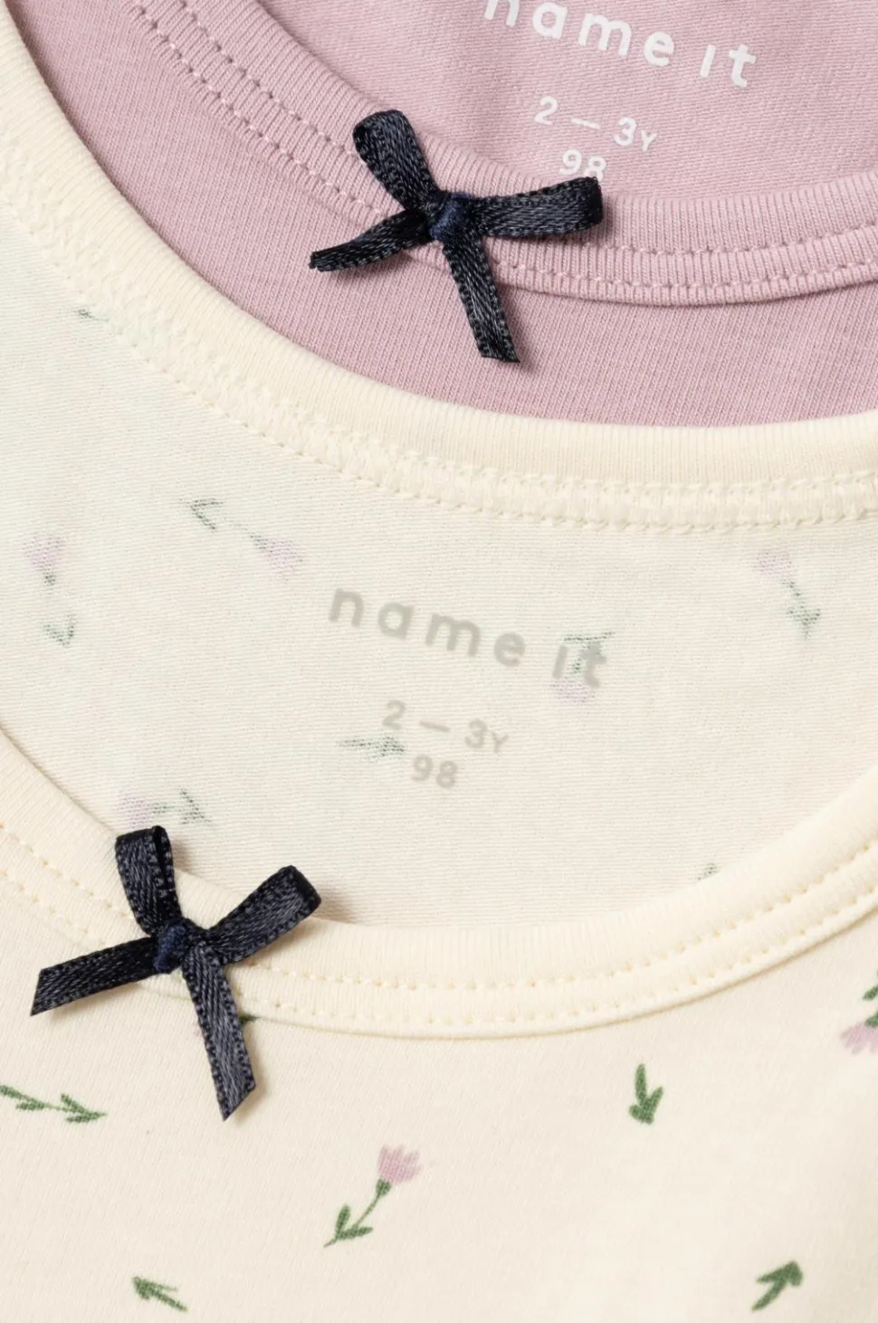 • Rund halsudskæring med lille, dekorativ sløjfe foran