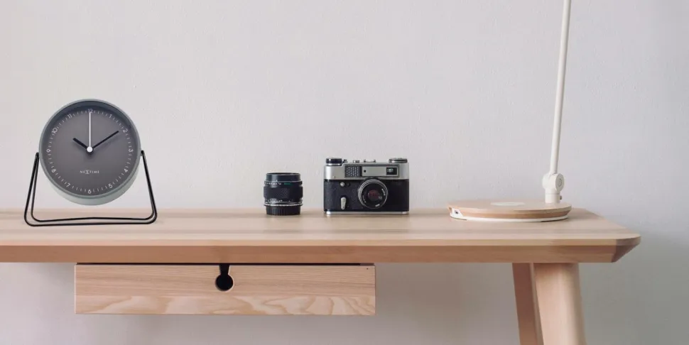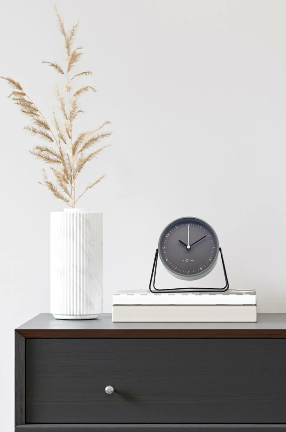 Det lydløse vækkeur berlin er et moderne og slankt design af jette scheib. Borduret har subtile detaljer i en mat metalkasse med en matchende farvet urskive.