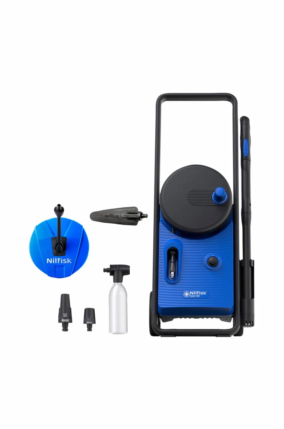 Denne kraftige højtryksrenser fra Nilfisk har håndkontrol med effektregulering for justerbart vandtryk, mens du renser. Klarer nemt dine rengøringsbehov