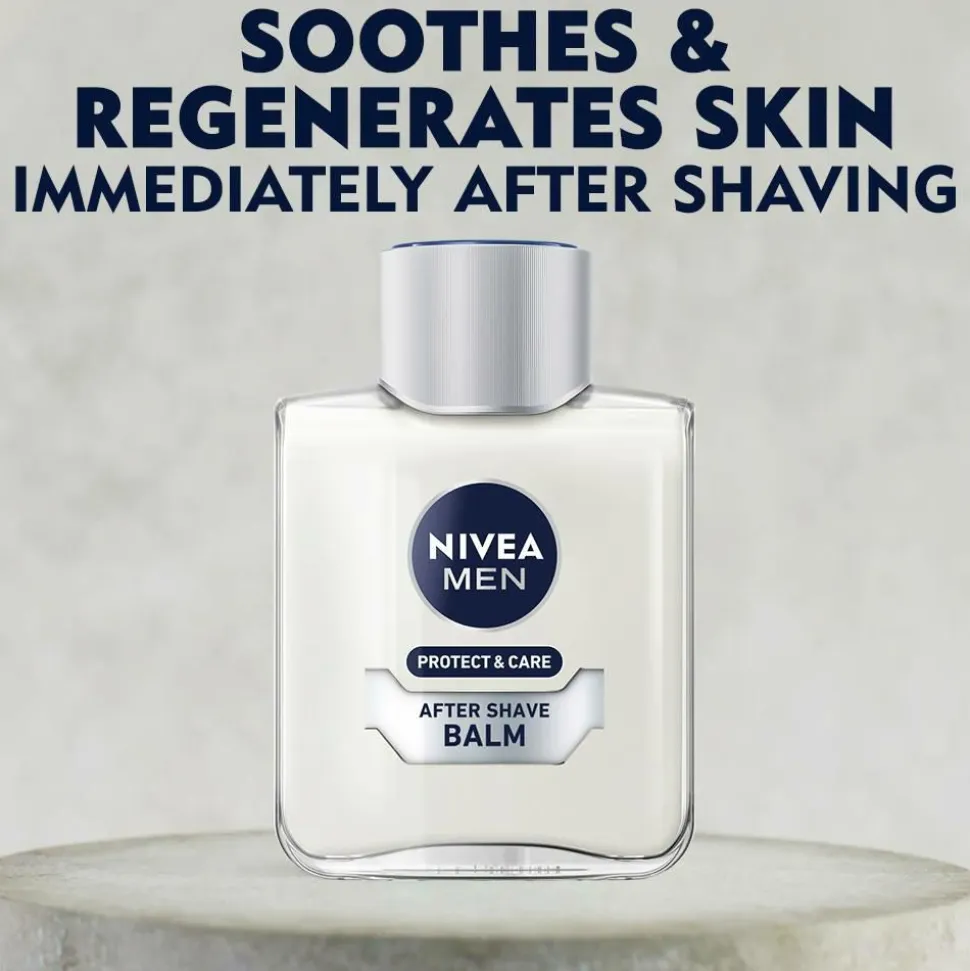 NIVEA MEN Protect & Care After Shave Balm er en aftershave, der plejer og beskytter din hud efter barbering. Cremen har en mild, formel, der ikke fedter, beriget med Provitamin B5, der straks dulmer ubehag i huden og giver langvarig og intensiv fugt. Denne barberbalsam er beriget med aloe vera og hjælper huden med at reparere og forny sig selv i dybden. Dette produkt reducerer rødme og stramhed efter barbering, mens det aktiverer og understøtter hudens barriere og naturlige funktioner. Giver en behagelig følelse på huden, er ikke klistret og absorberes hurtigt. Passer til alle hudtyper. Dermatologisk testet.