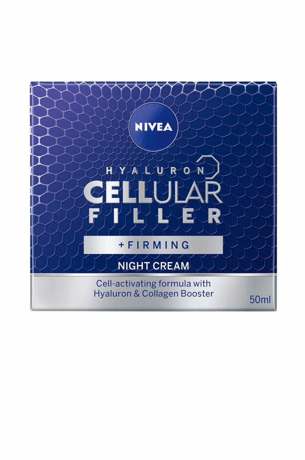 Nivea Hyaluron Cellular Filler Firming Night Cream udfylder rynker og forbedrer hudens fasthed. Formlen indeholder en kombination af de celleaktiverende* ingredienser hyaluron og kollagen-booster. Disse aktiverer hudcellerne, så de producerer deres egen hyaluronsyre og kollagen* og forbedrer cellefornyelsen og fremskynder hudens egen regenerering. Resultat: Din hud føles glat og silkeblød. Dermatologisk testet.