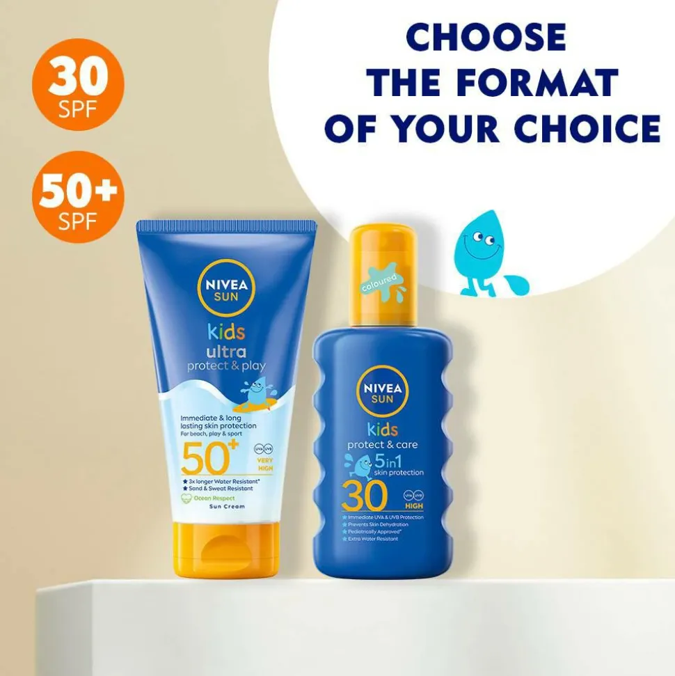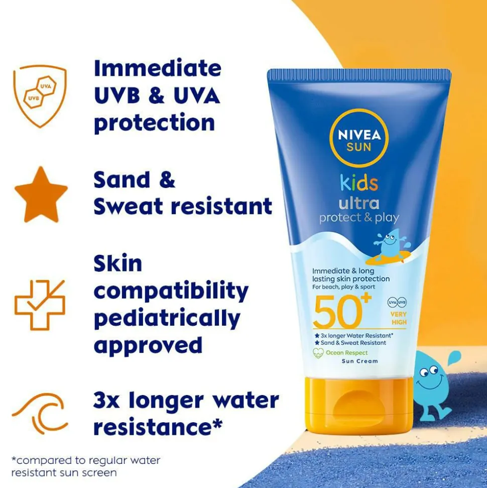 Solbeskyttelse til børn med solfaktor SPF 50+ – der beskytter huden indefra og udefra.