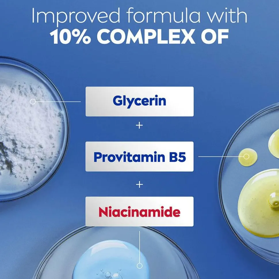 Nivea Repair & Care Body Lotion er en bodylotion, der styrker din hudbarriere. Med sin 3x effekt – reparation, beskyttelse og pleje – giver denne hudcreme den pleje, din hud har brug for. Lotionen indeholder et 10 % kompleks af glycerin, provitamin B5 og niacinamid, som øjeblikkeligt lindrer kløende hud og giver et sundt udseende. Ikke-klæbende og hurtigt absorberende formel, der fugter huden i 72 timer. Den er dermatologisk testet og passer perfekt til tør til meget tør hud. For at opnå de bedste resultater anbefaler vi at anvende denne bodylotion dagligt på hele kroppen.