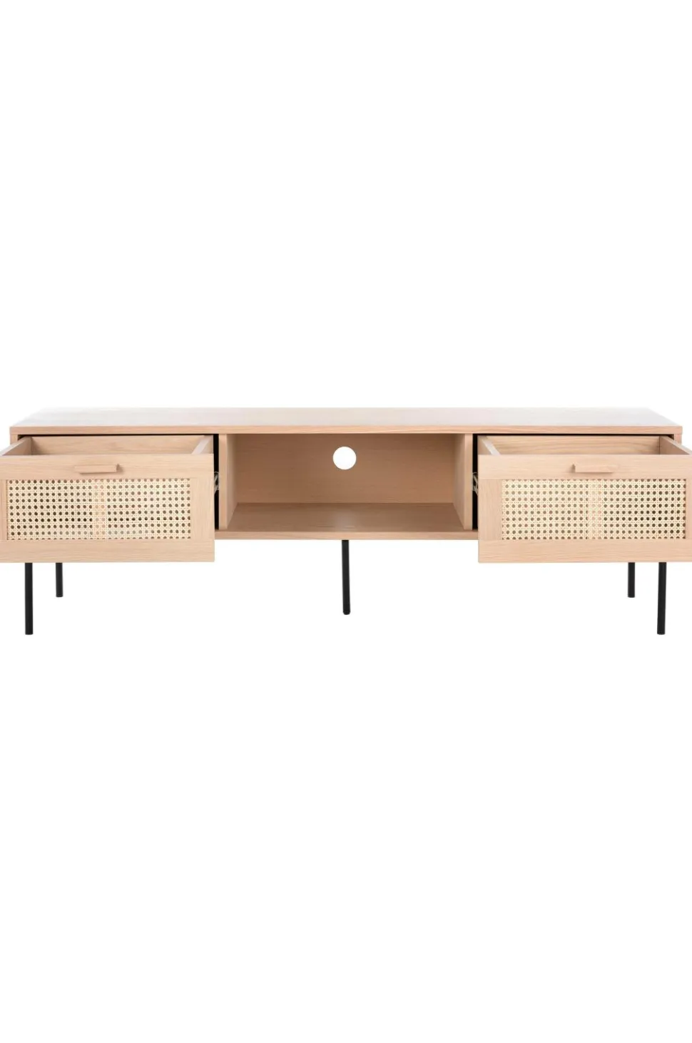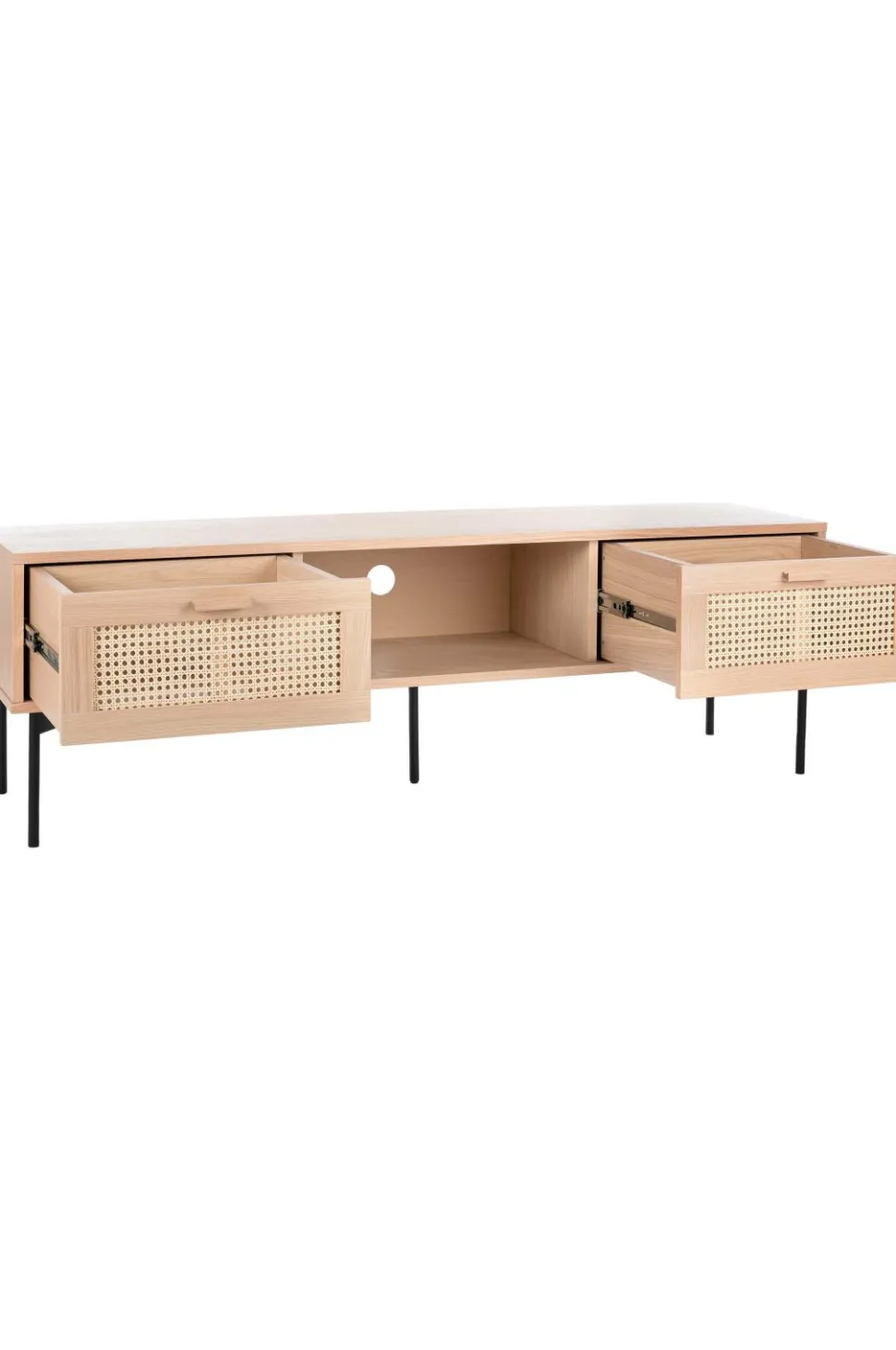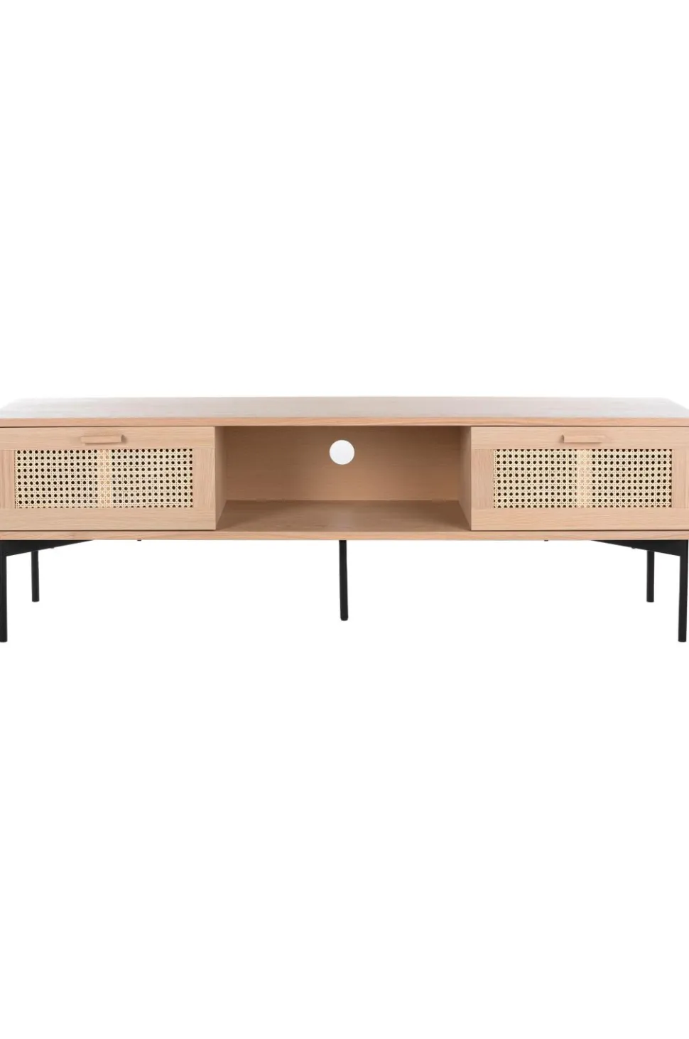 Tv-bænk i lakeret eg, rotting og metal med 2 skuffer. Softclose i skufferne.