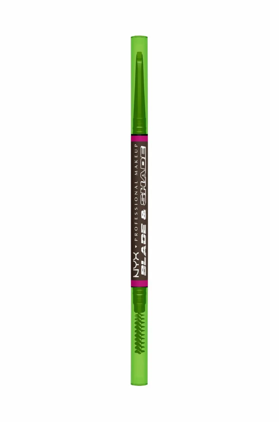 Blade & Shade er vores første øjenbrynsblyant med både skarp og flad spids for præcis optegning og naturlig skygge af brynene. Tegn små, nano-tynde streger, vend blyanten og børst for at skabe et look der er inspireret af microblading. Holder i op til 16 timer. Findes i mange nuancer. Tværer ikke ud og smitter ikke af.