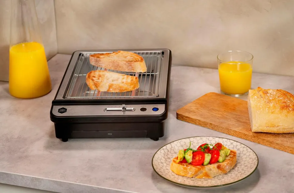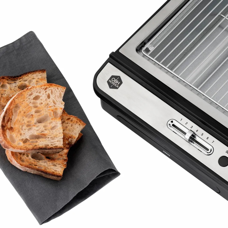 En vandret brødrister, der gør det nemt at riste store skiver brød, bagels eller croissanter. Med en risteflade på 20×25 cm kan du riste flere kager på én gang. Perfekt til at gøre gårsdagens bagværk sprødt igen. To varmeelementer sikrer jævn ristning. Timer til forskellige ristningsniveauer og optøningsfunktion. Nem at rengøre med aftagelig krummebakke. Kompakt design i rustfrit stål med vipbar front og nye knapper. Pilotlys og 700 W effekt til hurtig ristning.