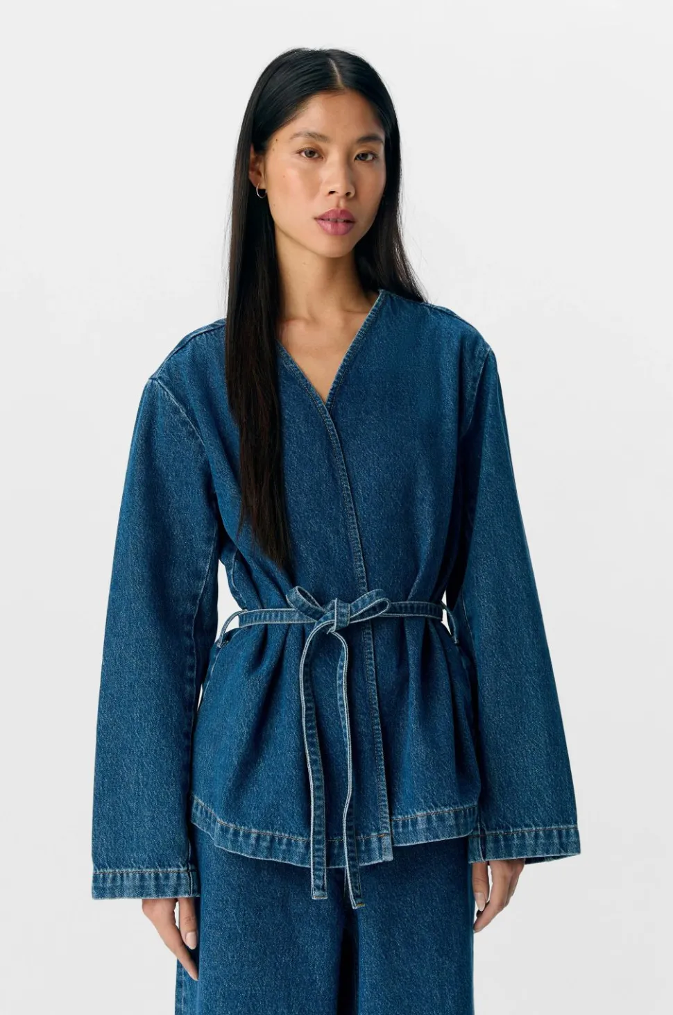 • Uden knaplukning habitjakke i bomuldsdenim
